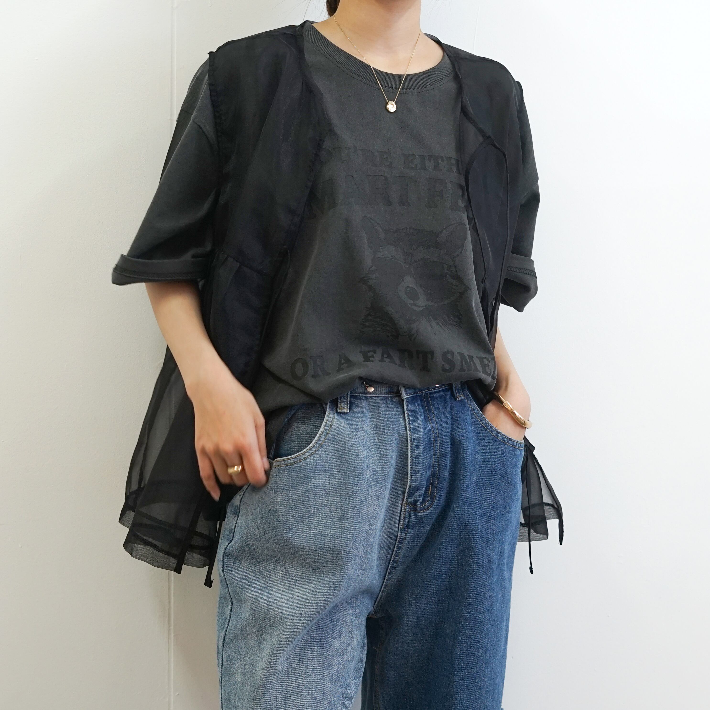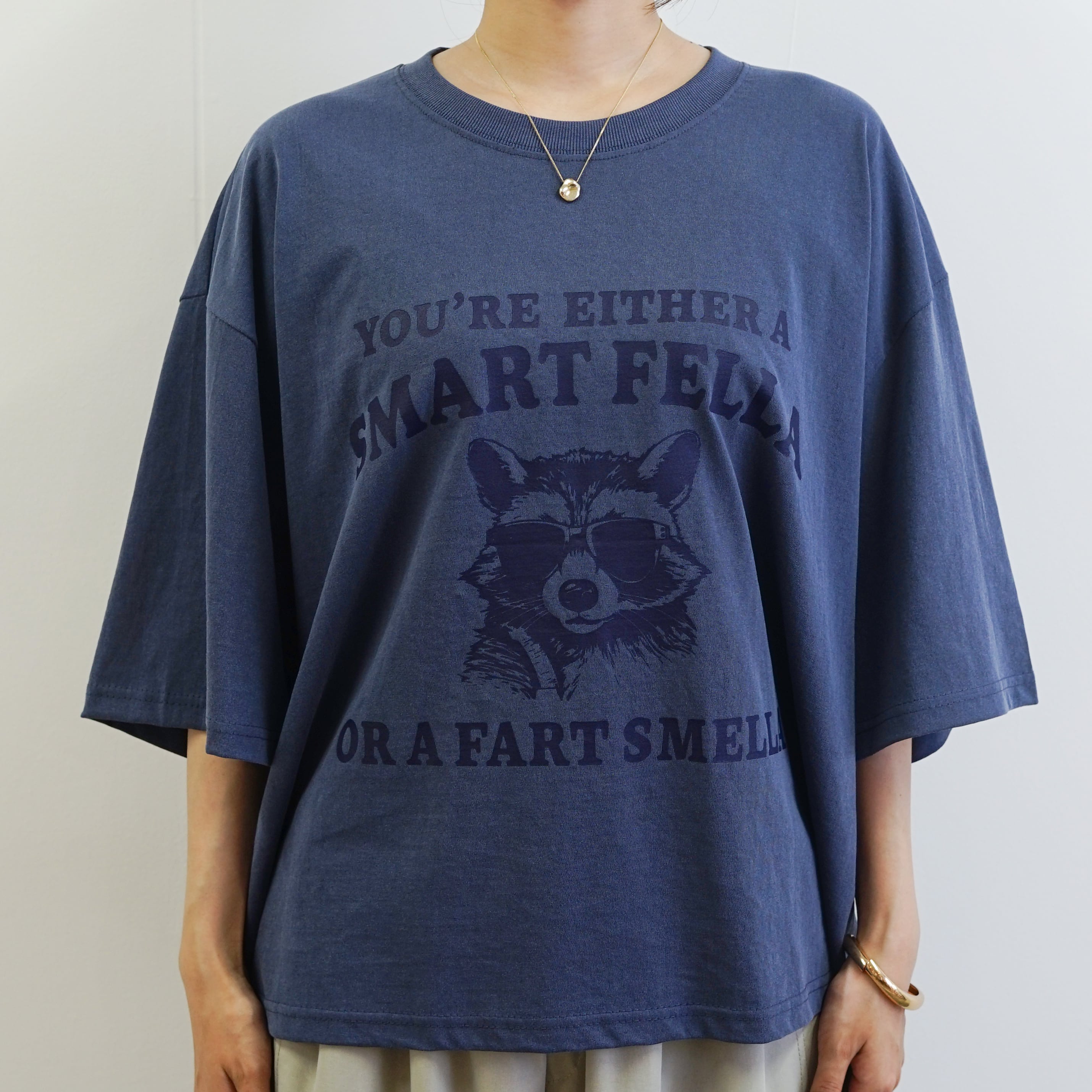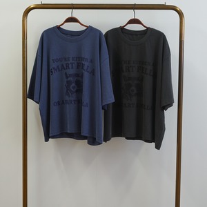 可愛らしいタヌキのデザインが特徴のビンテージ加工タヌキTee