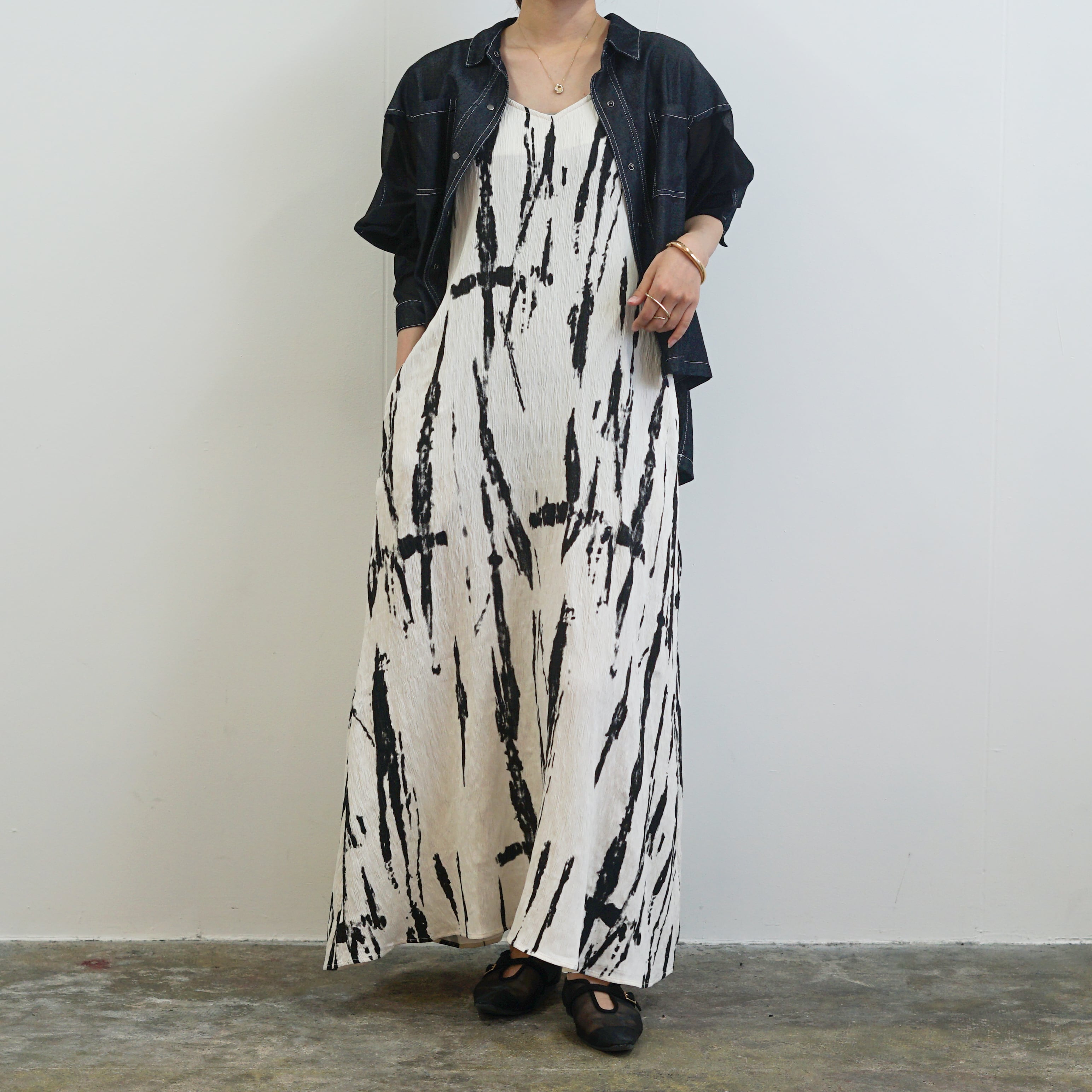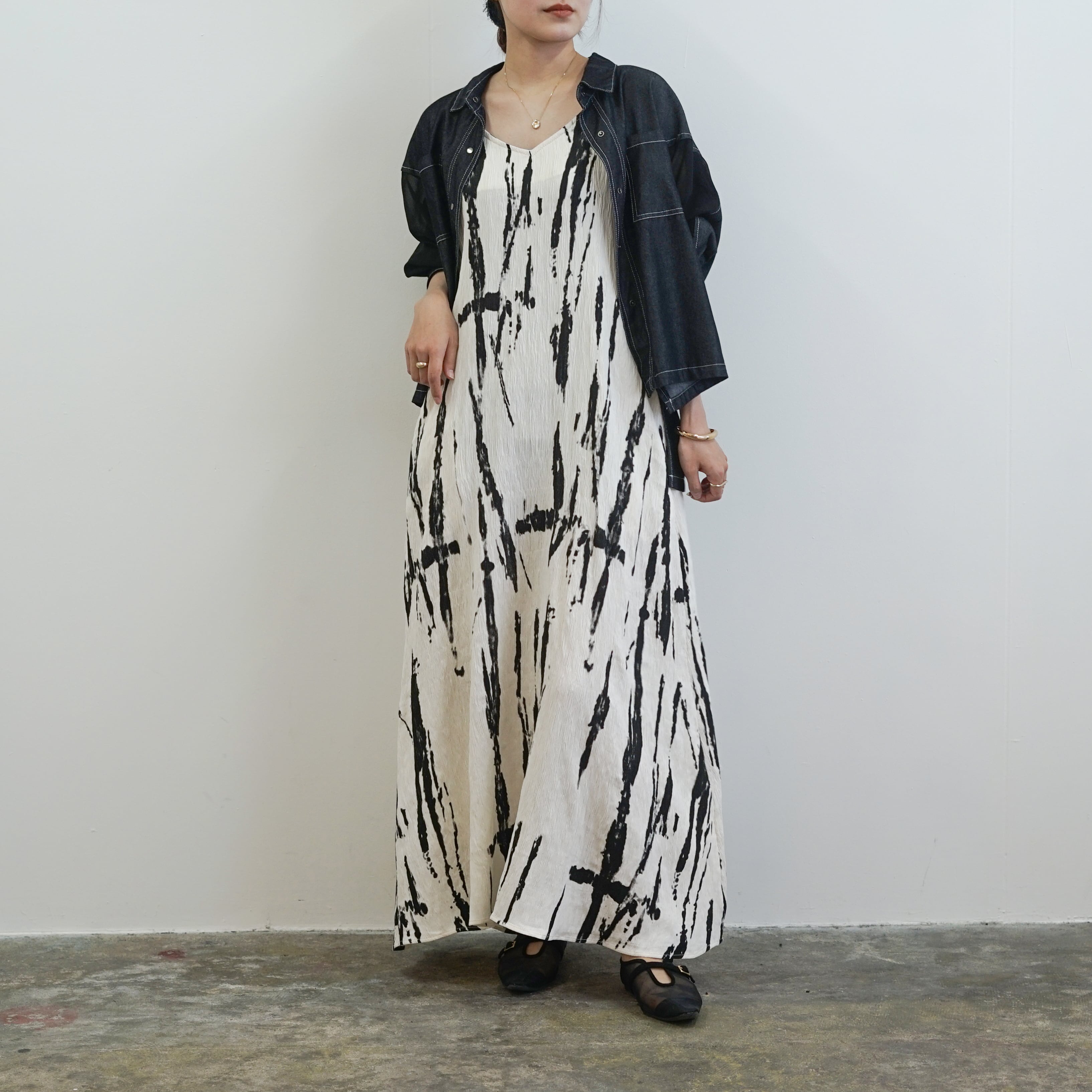 ペイント柄が洗練された印象を与えるキャミソールワンピース