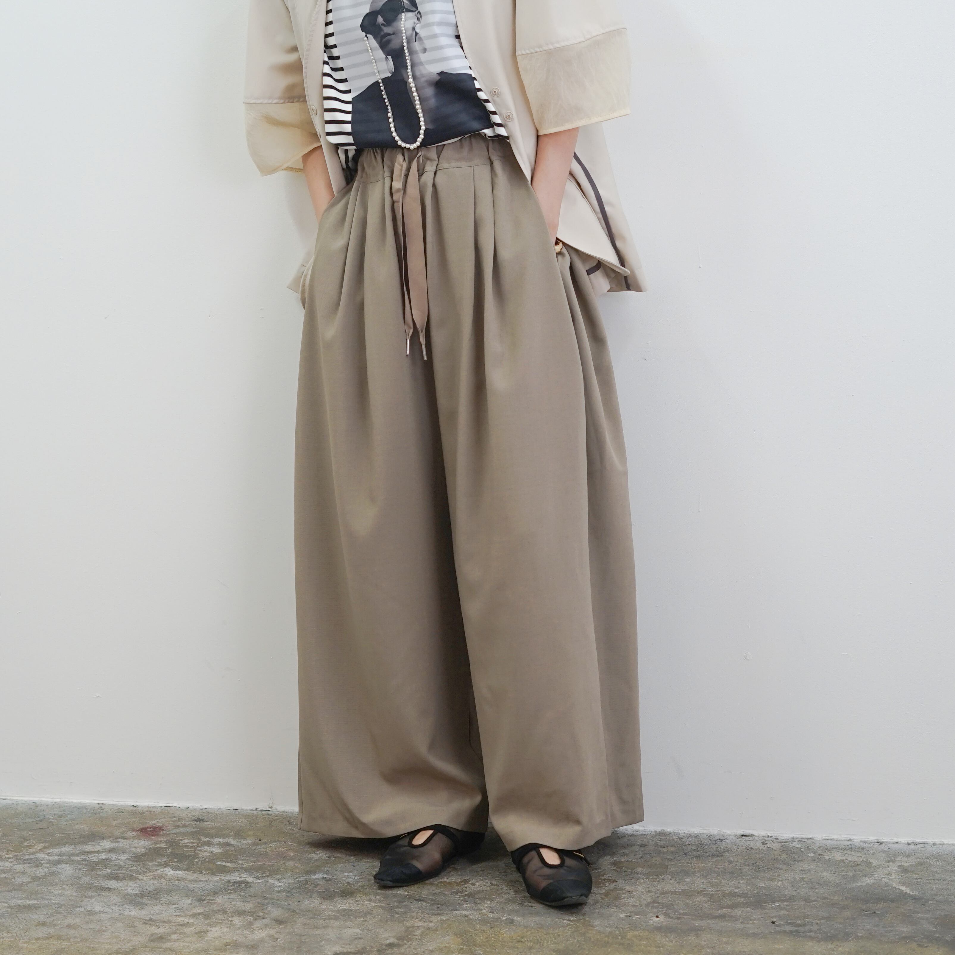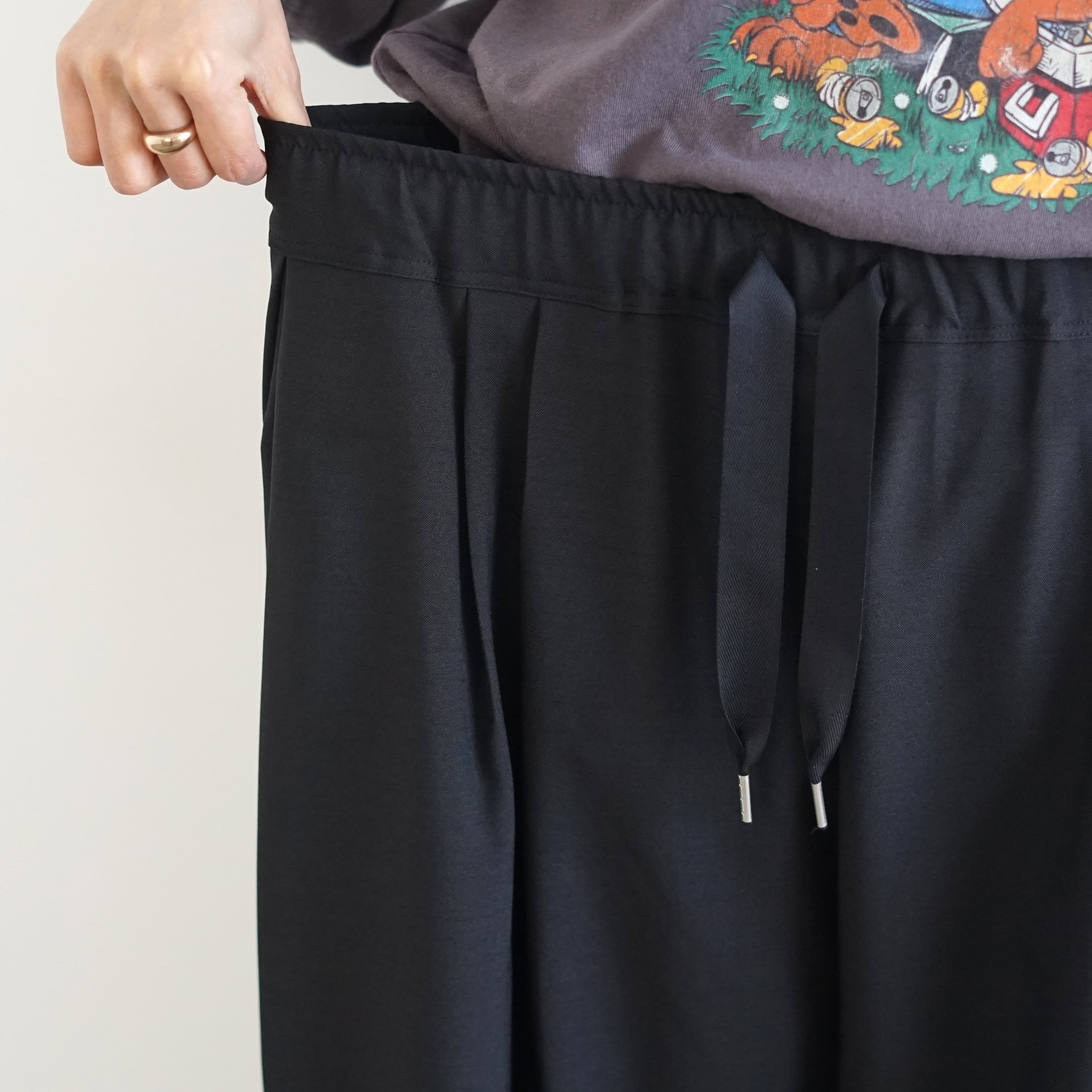 すとんと落ち感のある太めのルーズシルエットがたまらないタックパンツは、きちんと見えしながらもリラクシーな印象に!