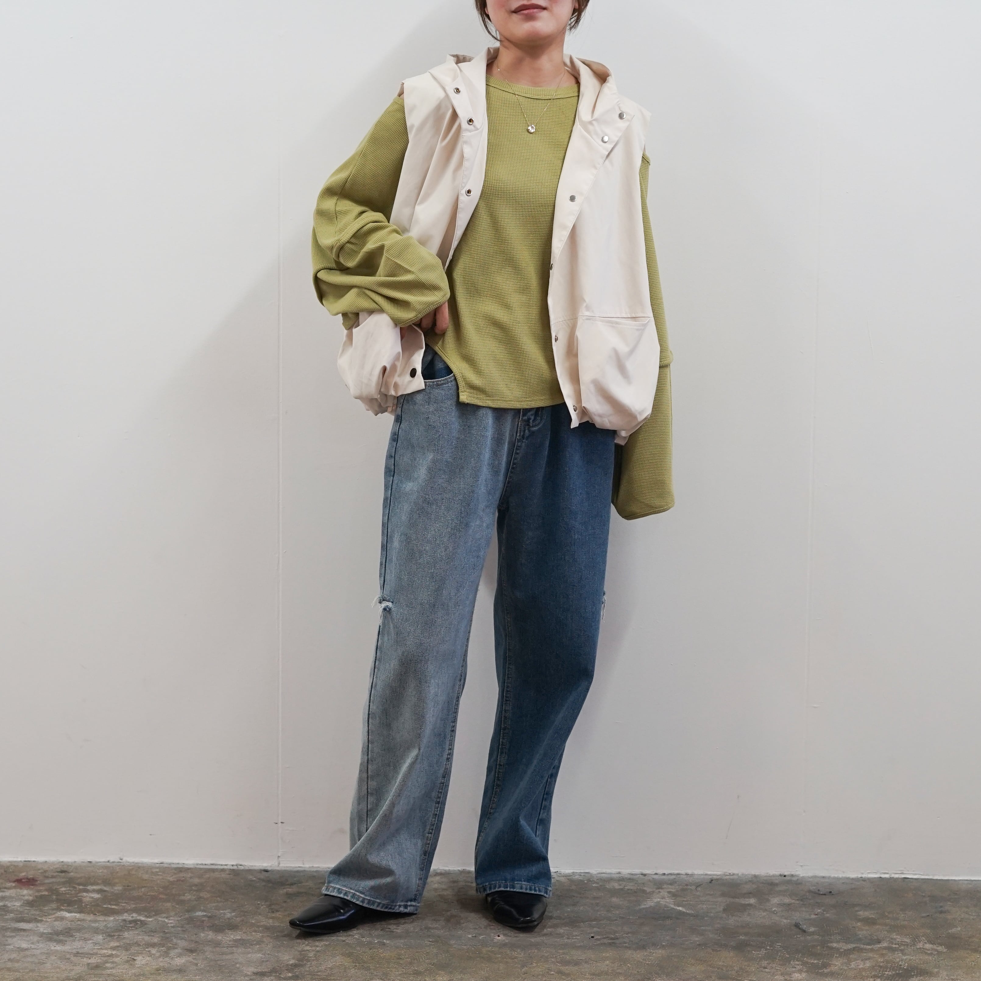 他にない存在感のあるデニムですがどんなトップスとも合わせやすく幅広いスタイルにマッチするオススメデニムです◎