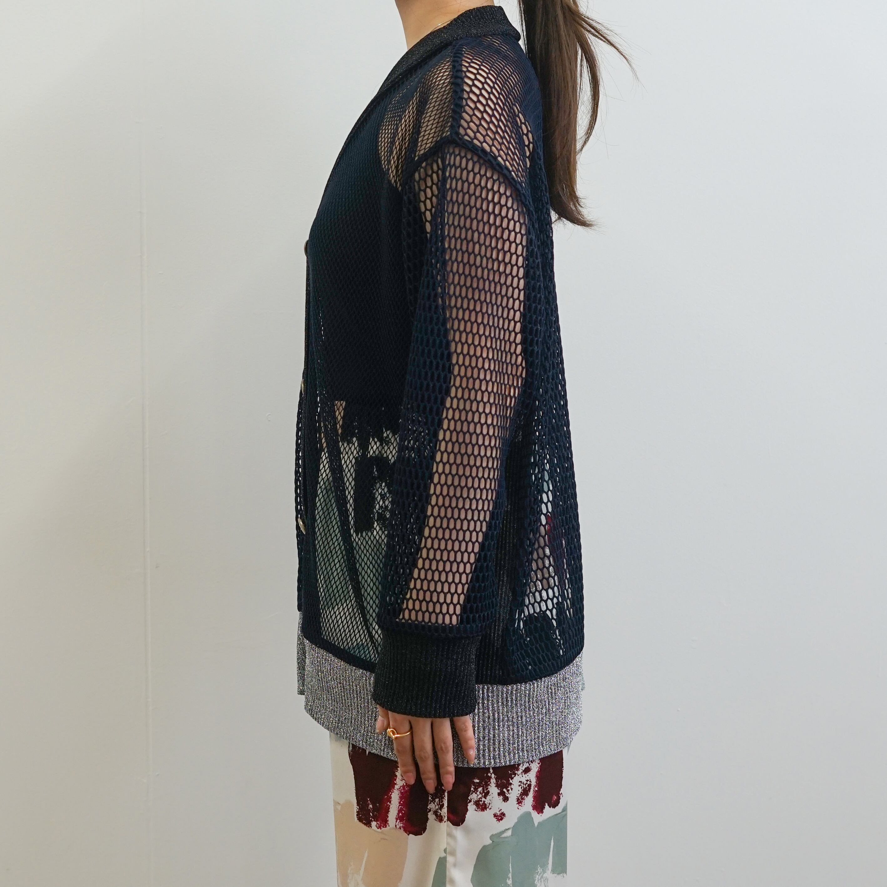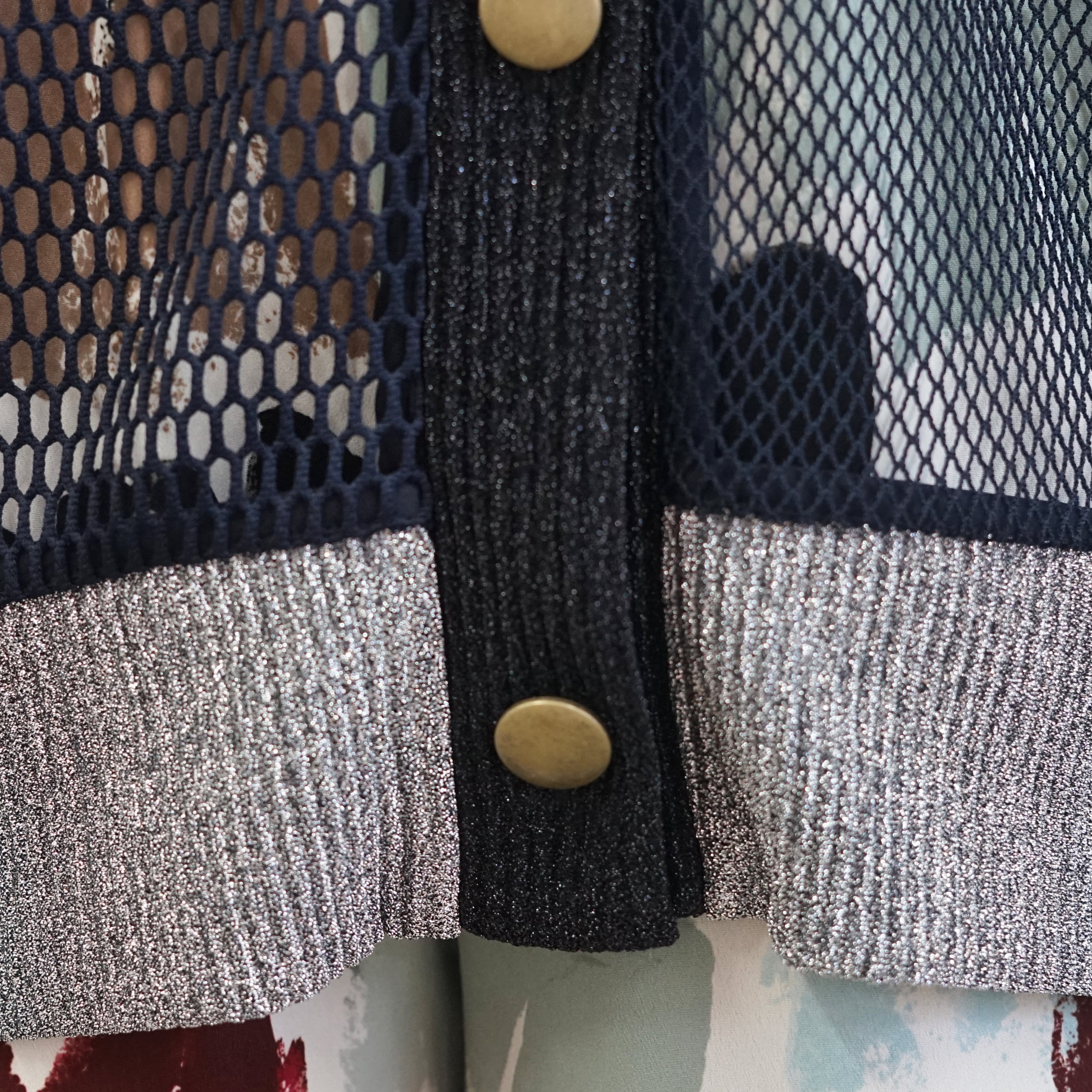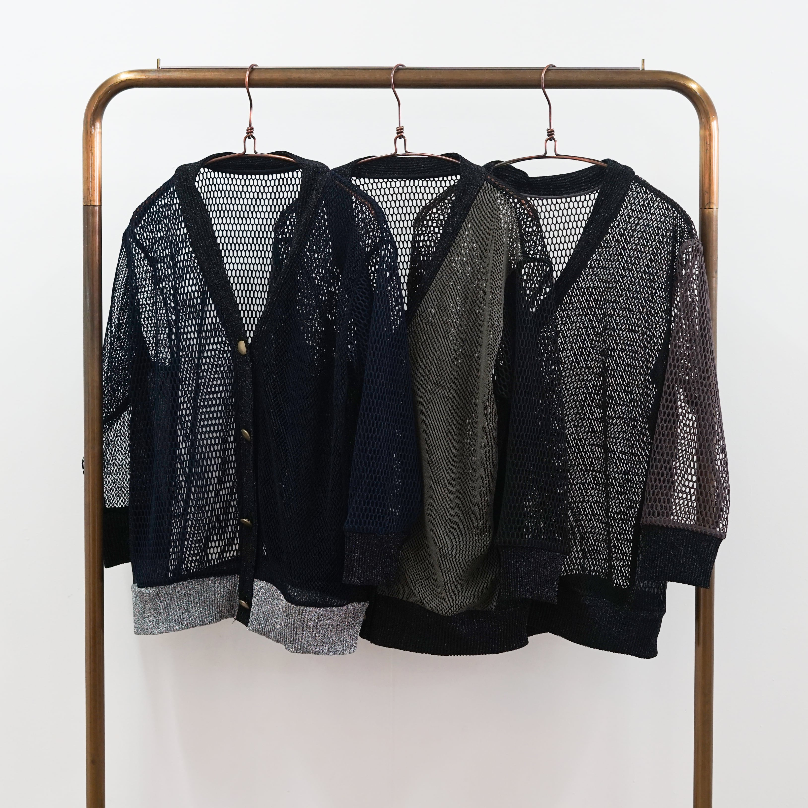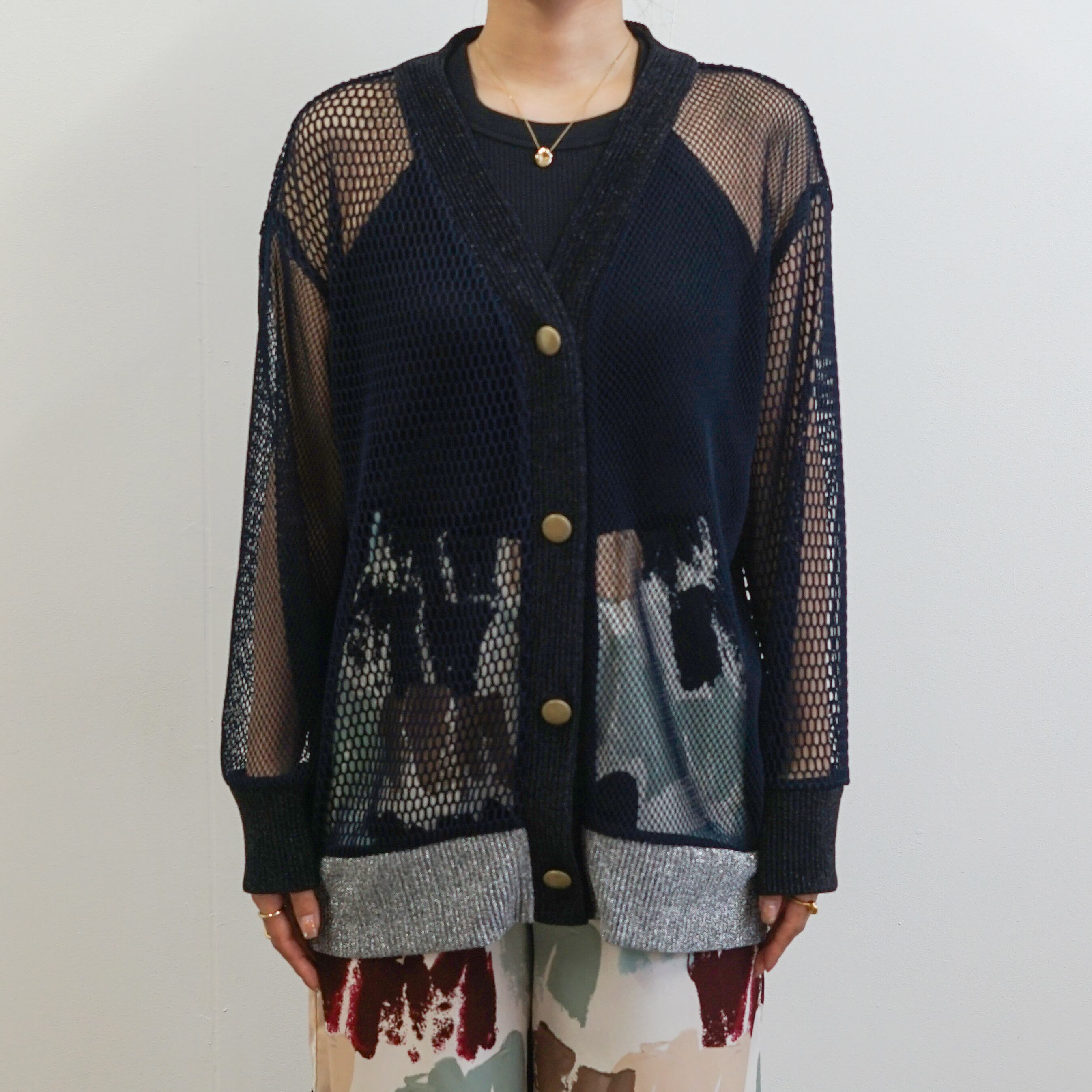 メッシュとラメリブのコンビネーションが魅力的なカーディガン