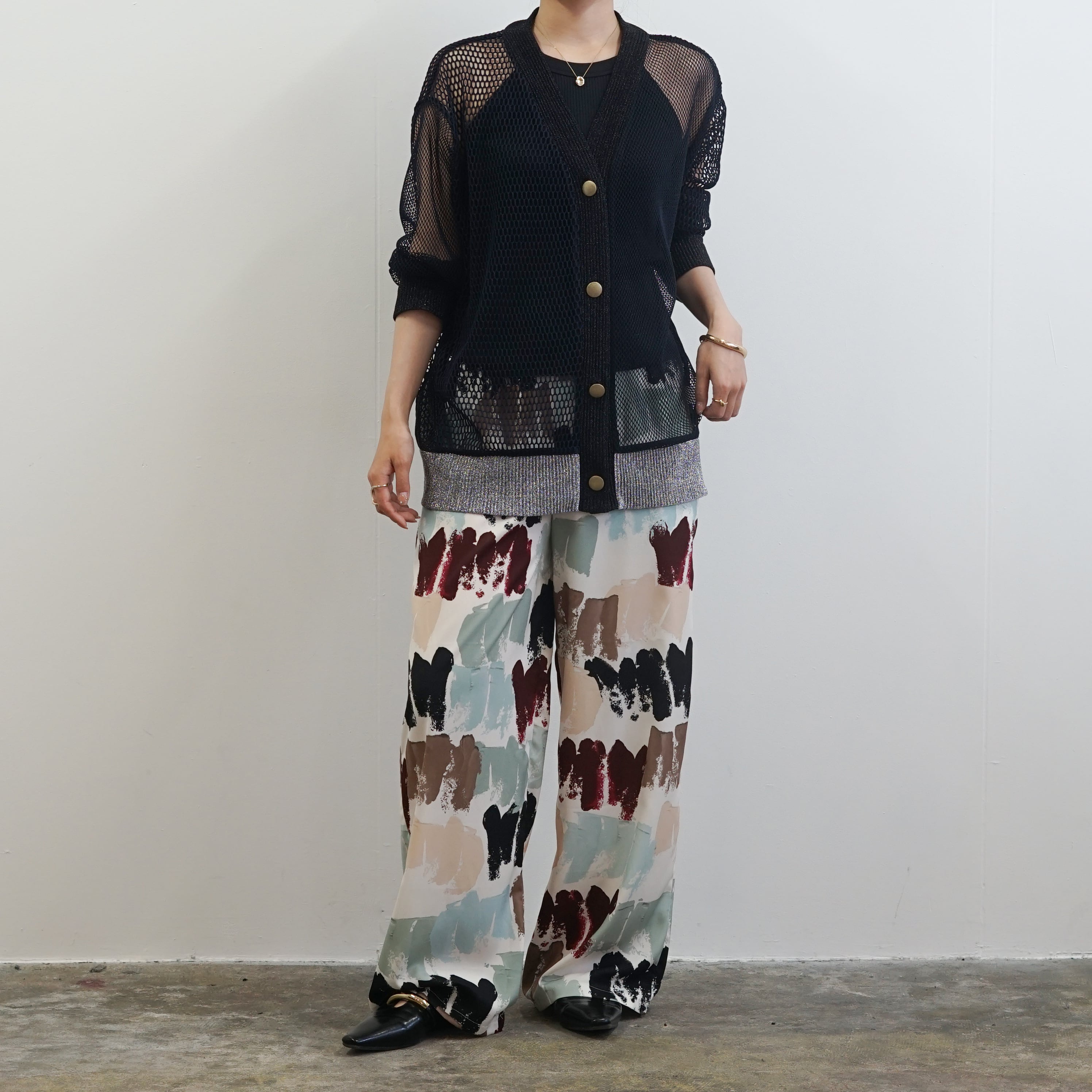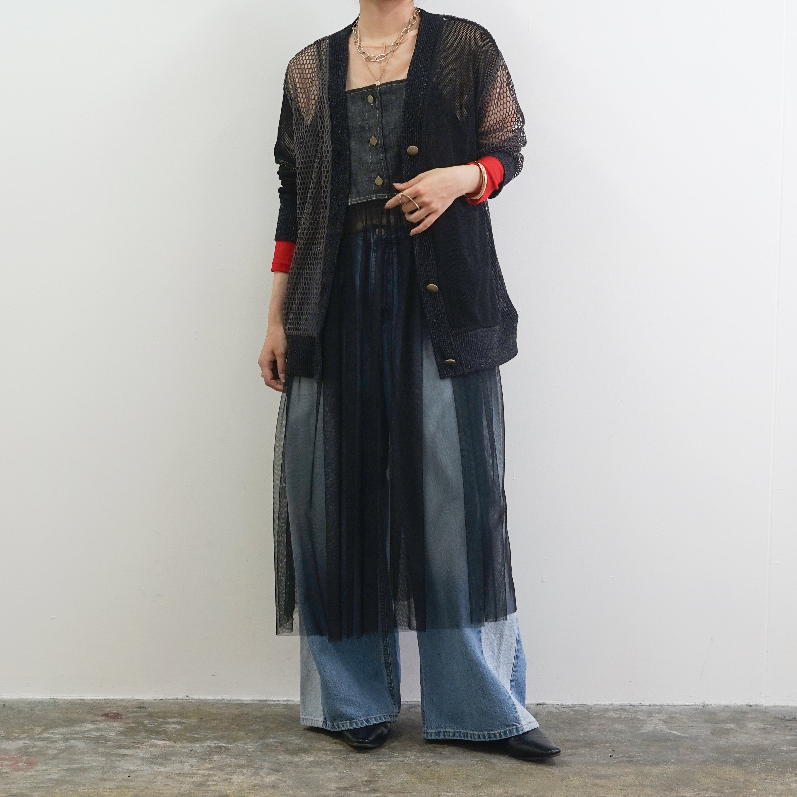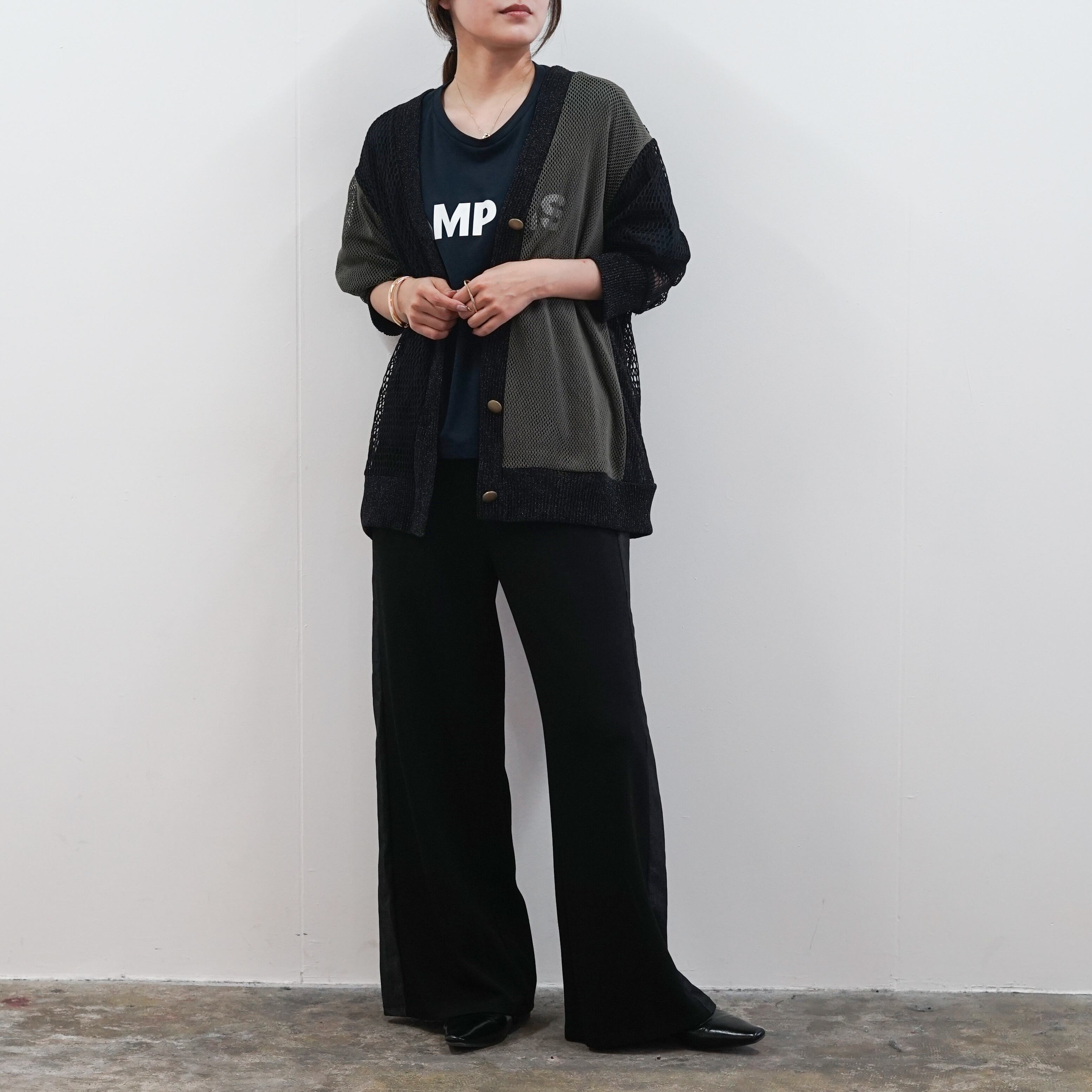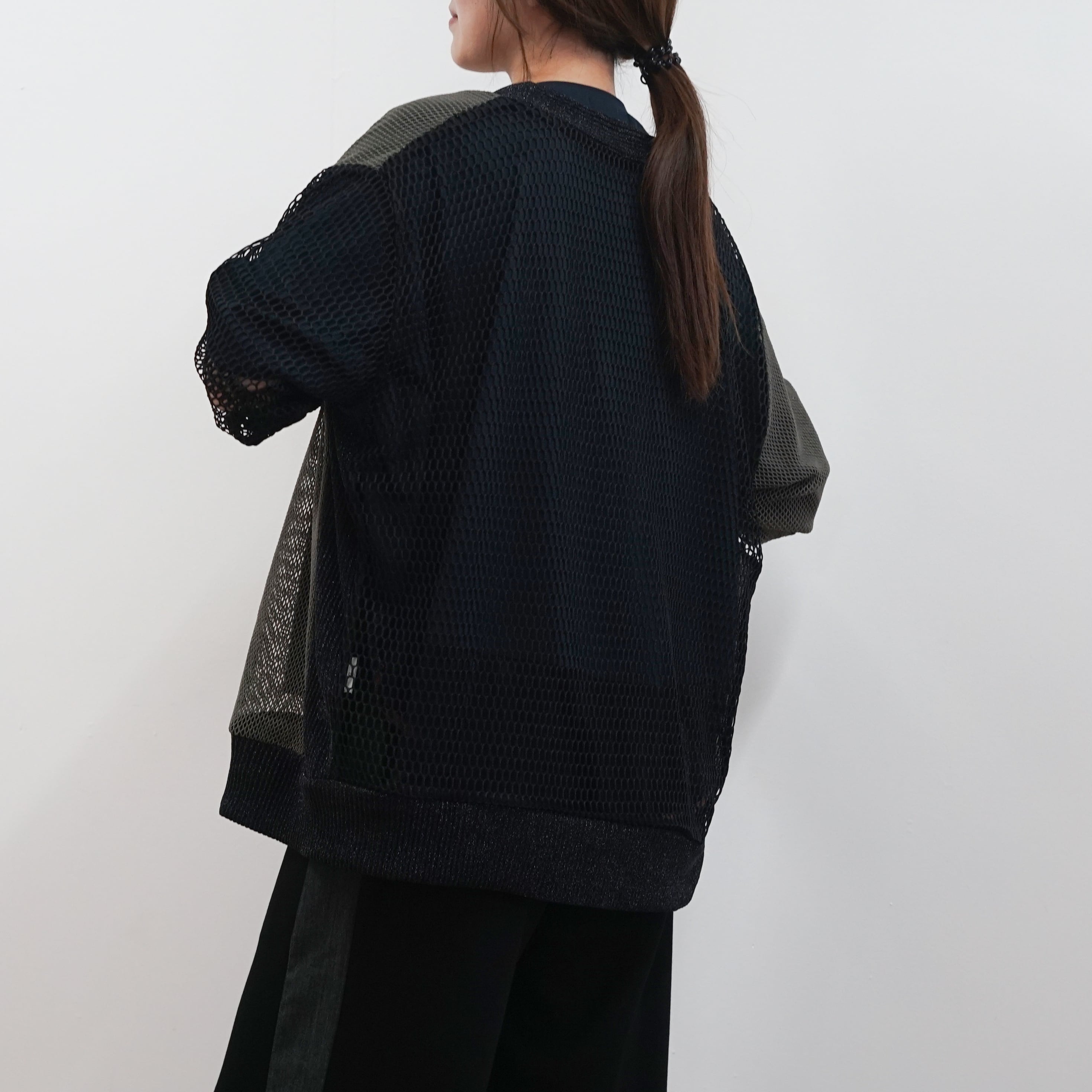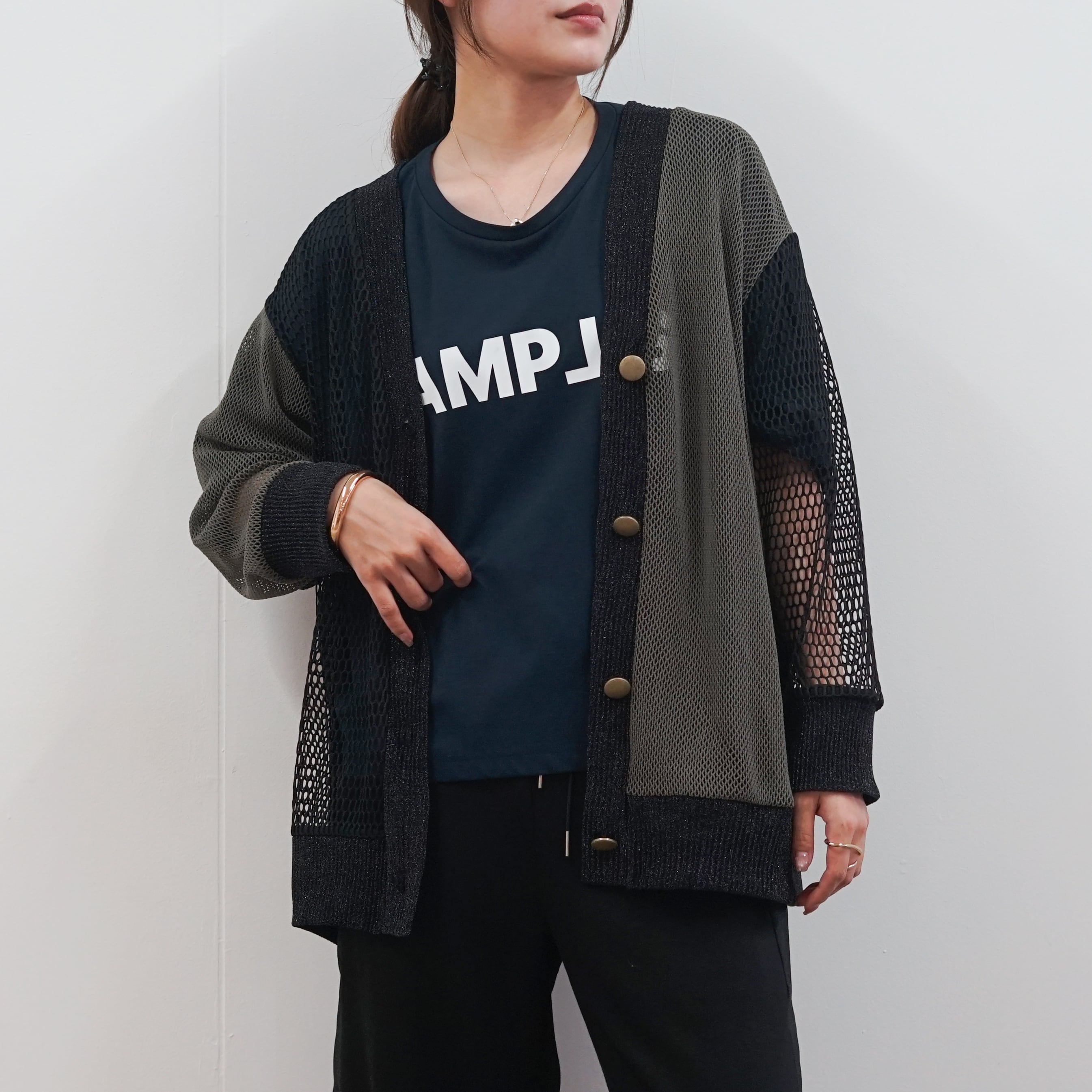 メッシュとラメリブのコンビネーションが魅力的なカーディガン