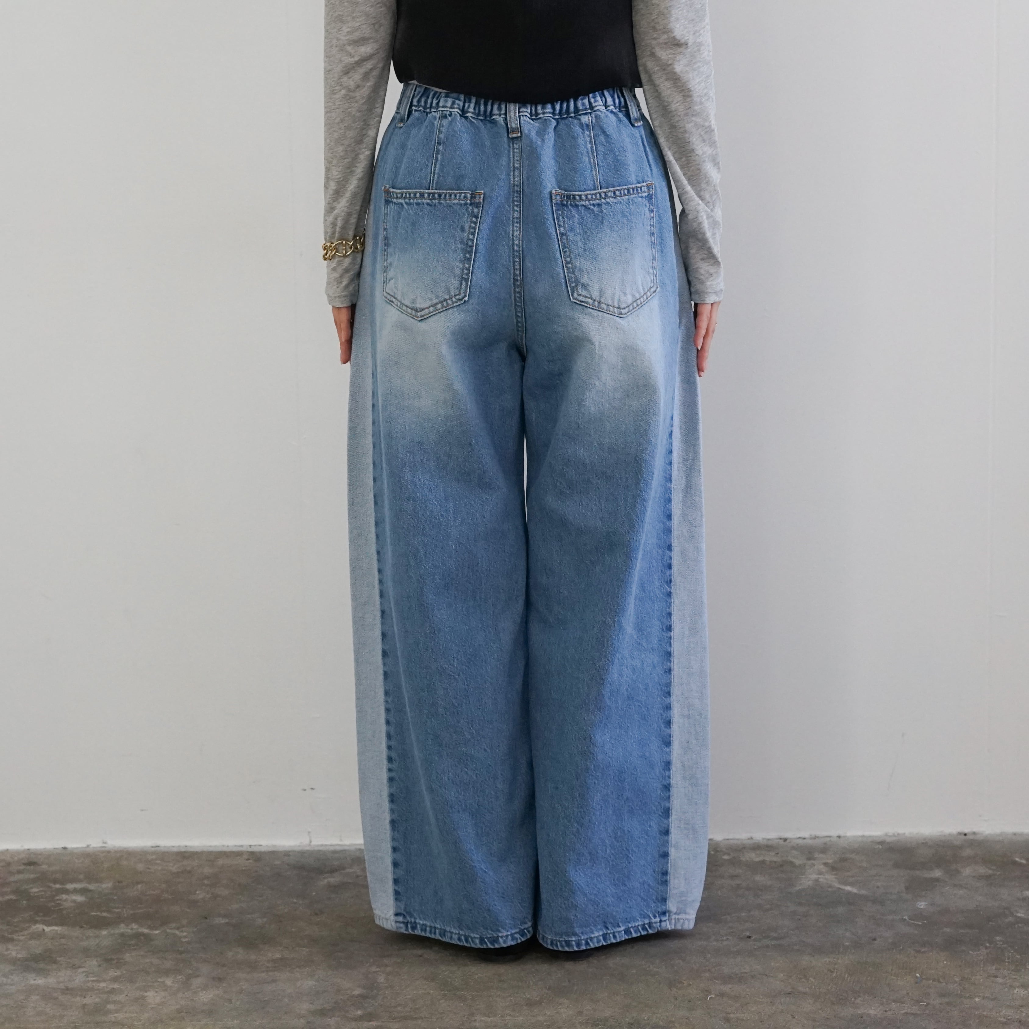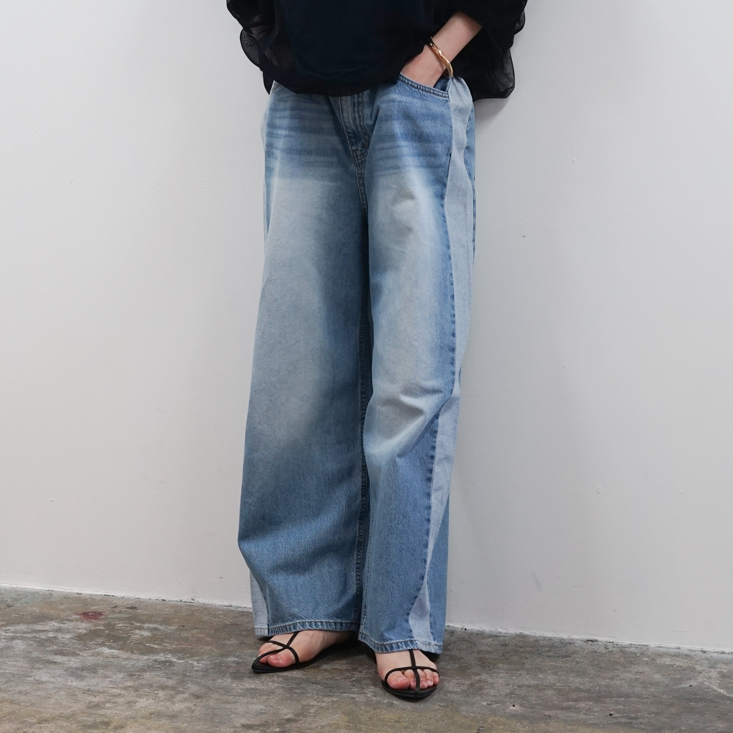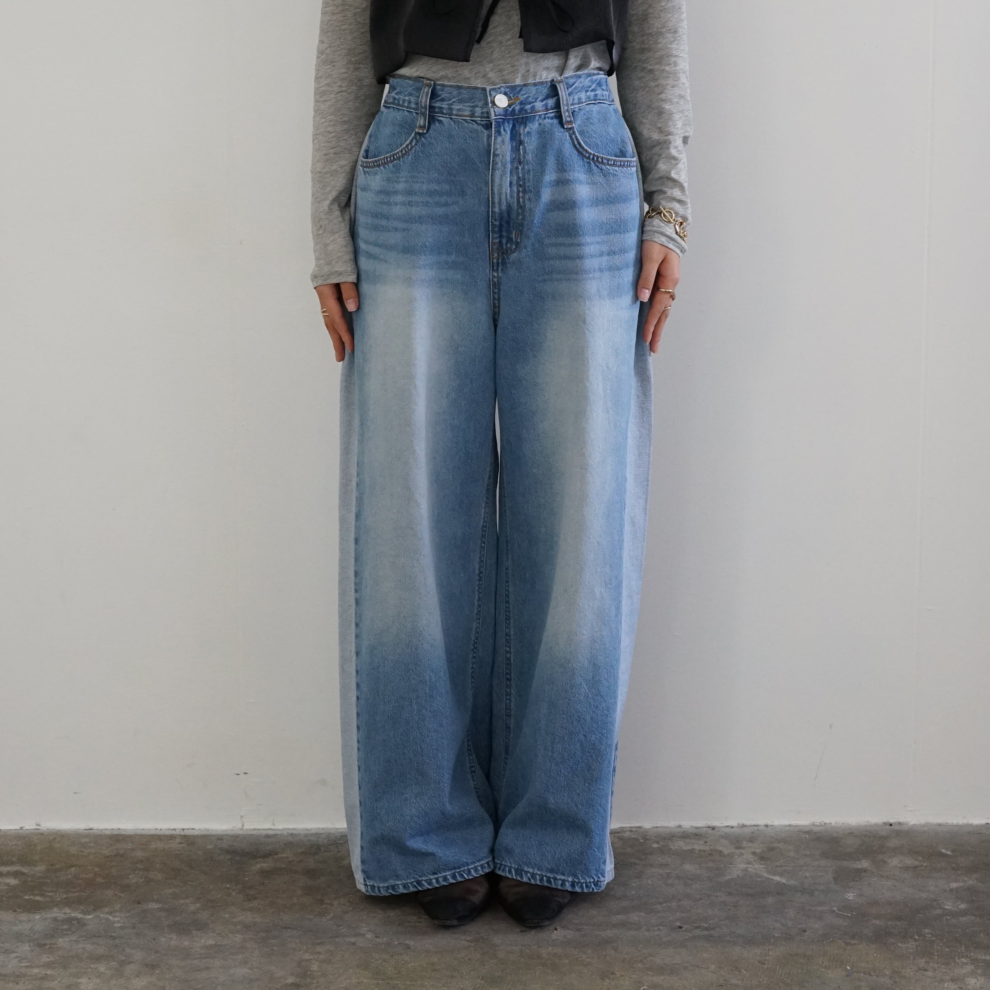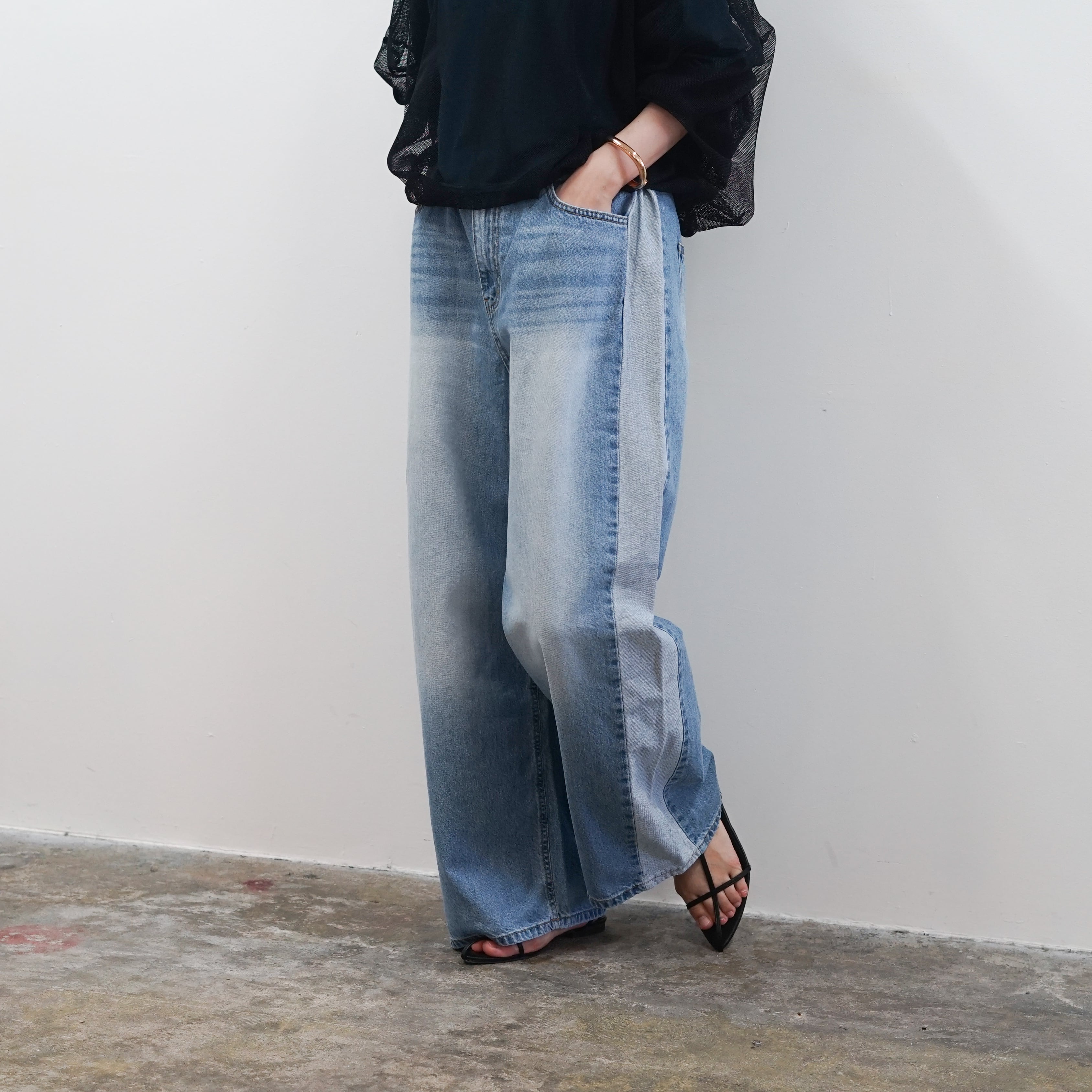 サイドラインですっきり見えのワイドストレートデニムパンツ