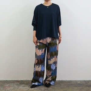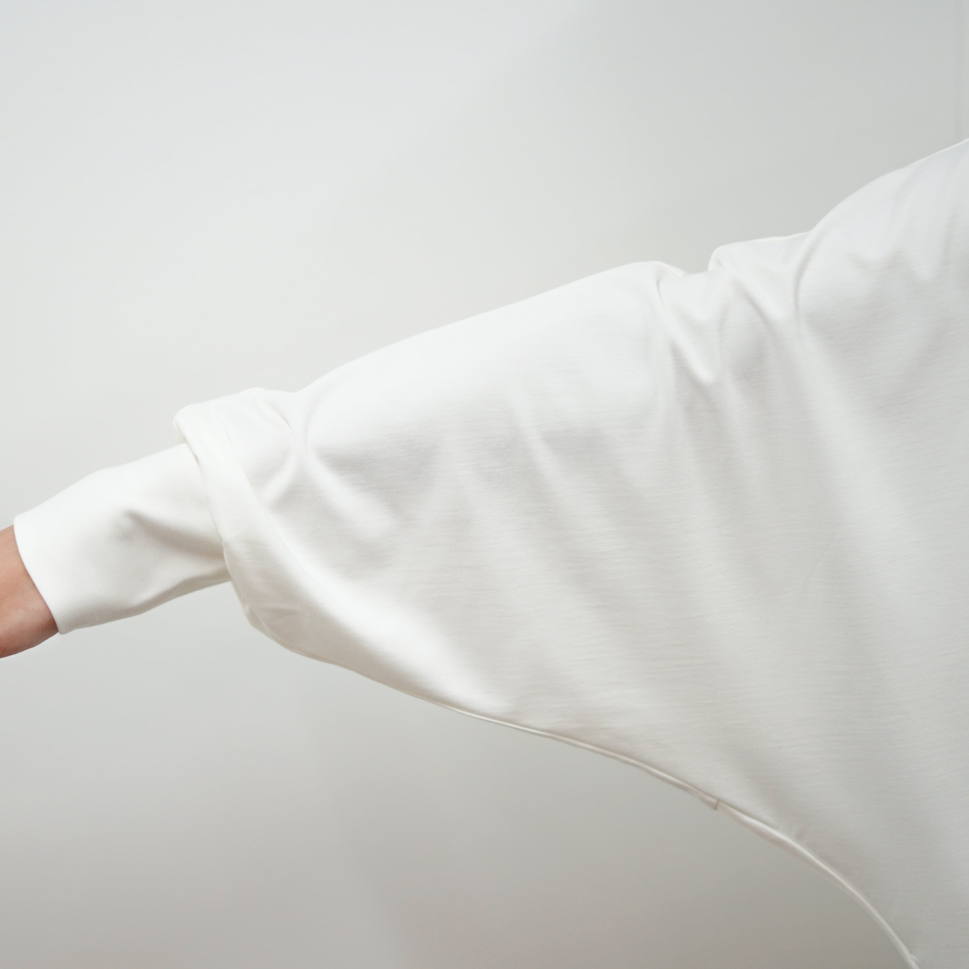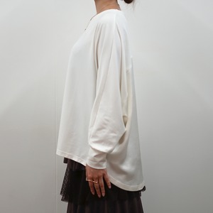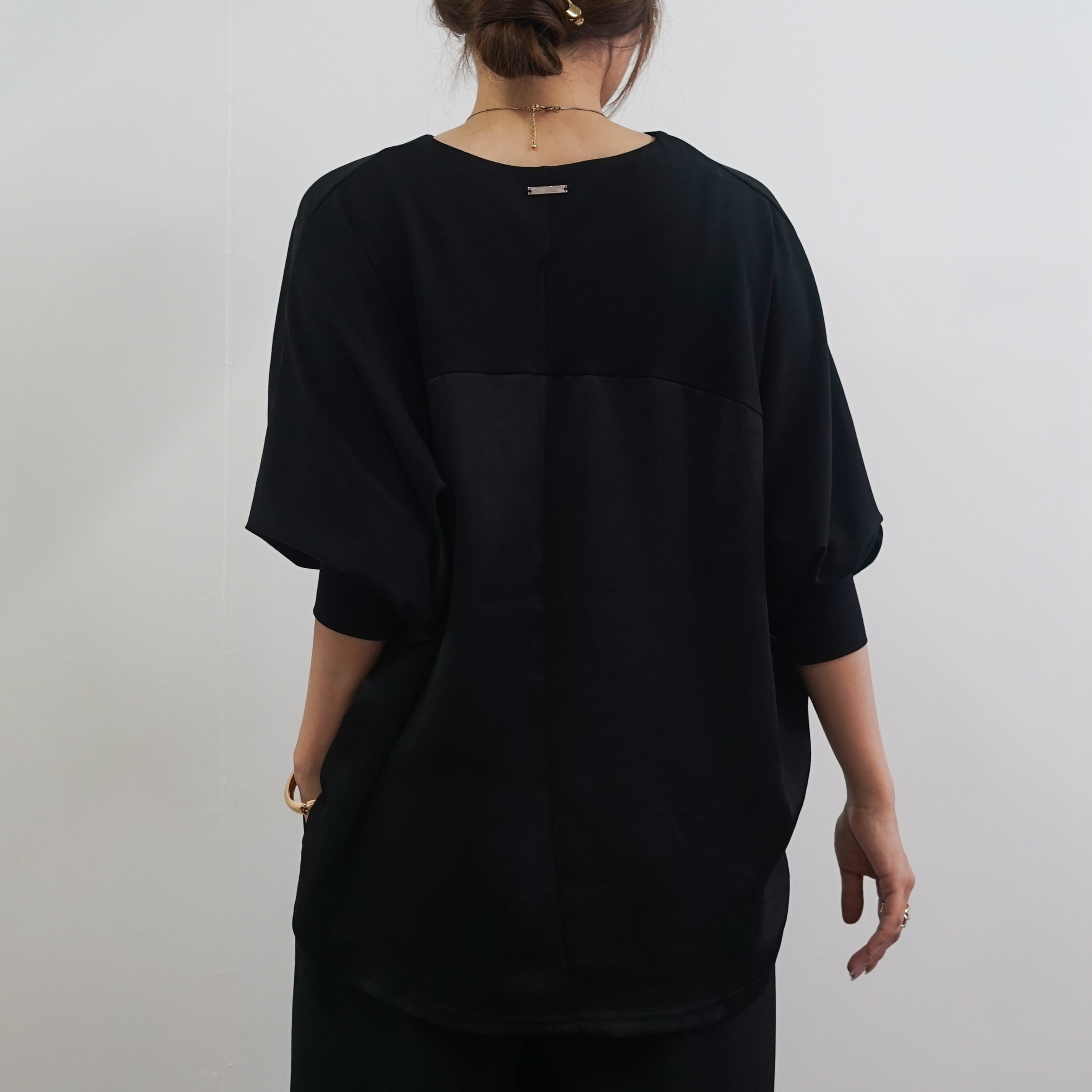 後ろ身頃には上品な光沢感のあるサテン素材を切替えてドッキング!