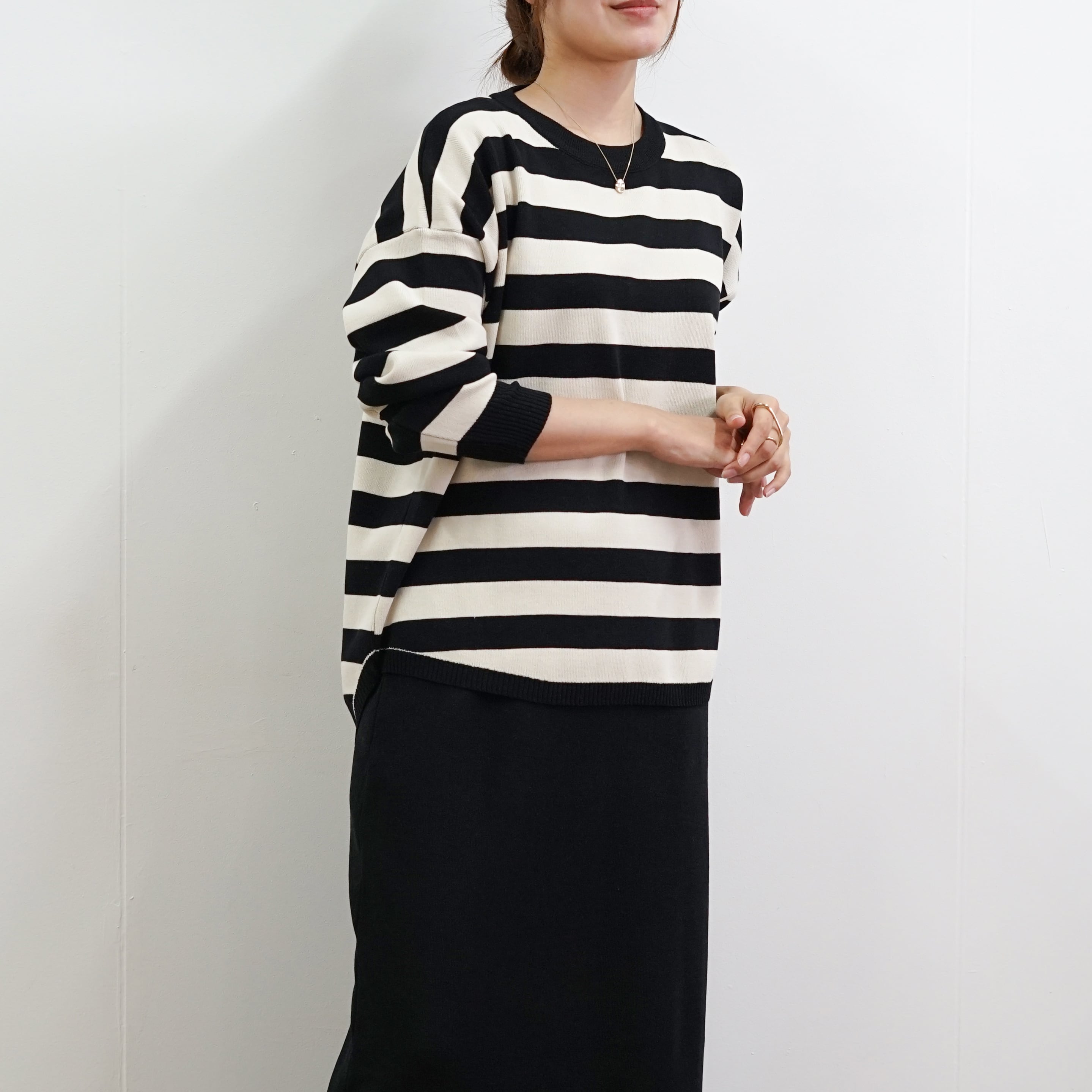 ワイドピッチのボーダー柄が程よい存在感を放ち