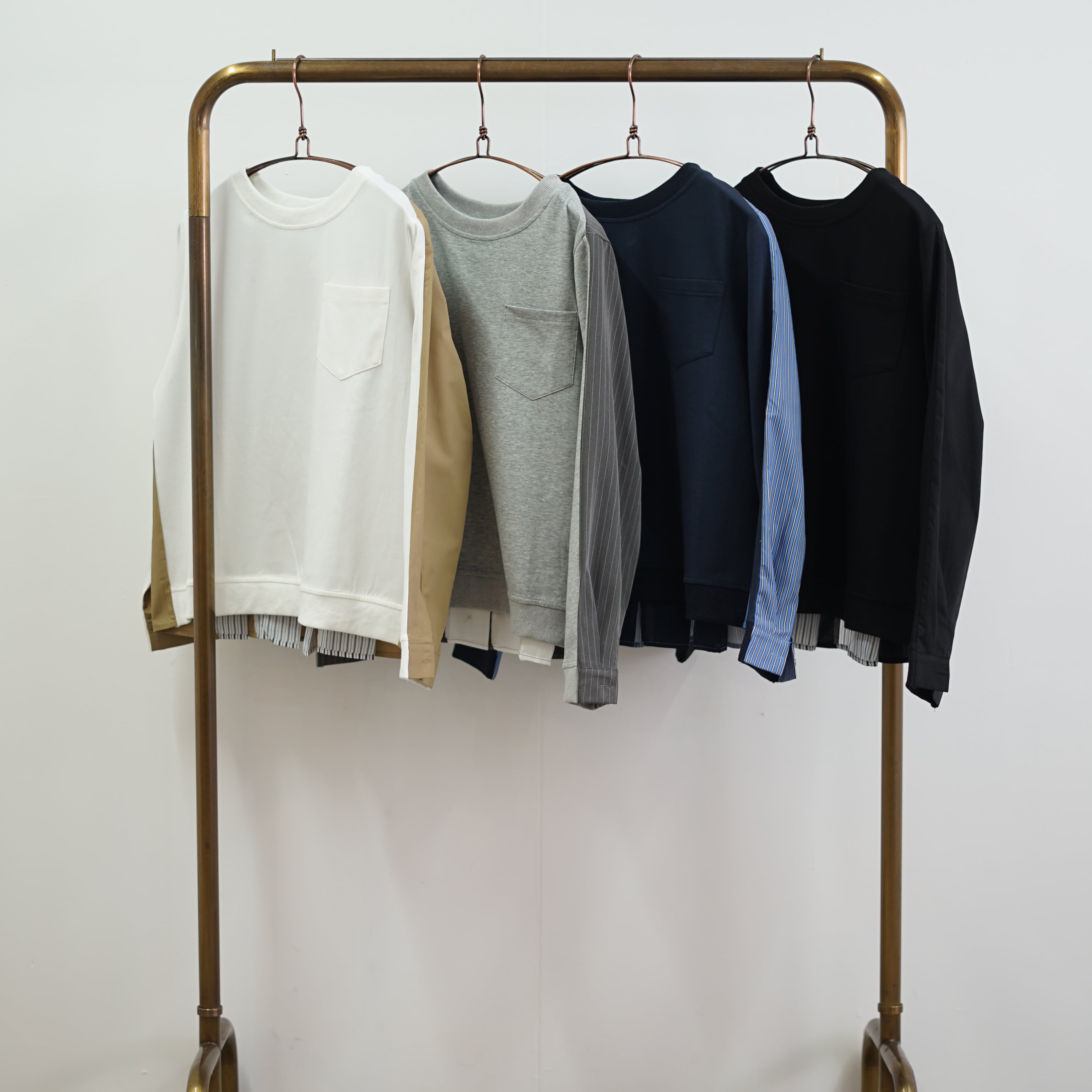 どんなボトムにも合わせやすく一枚で主役になる存在感がありコントラストが効いたモードな雰囲気のスタイリングに!