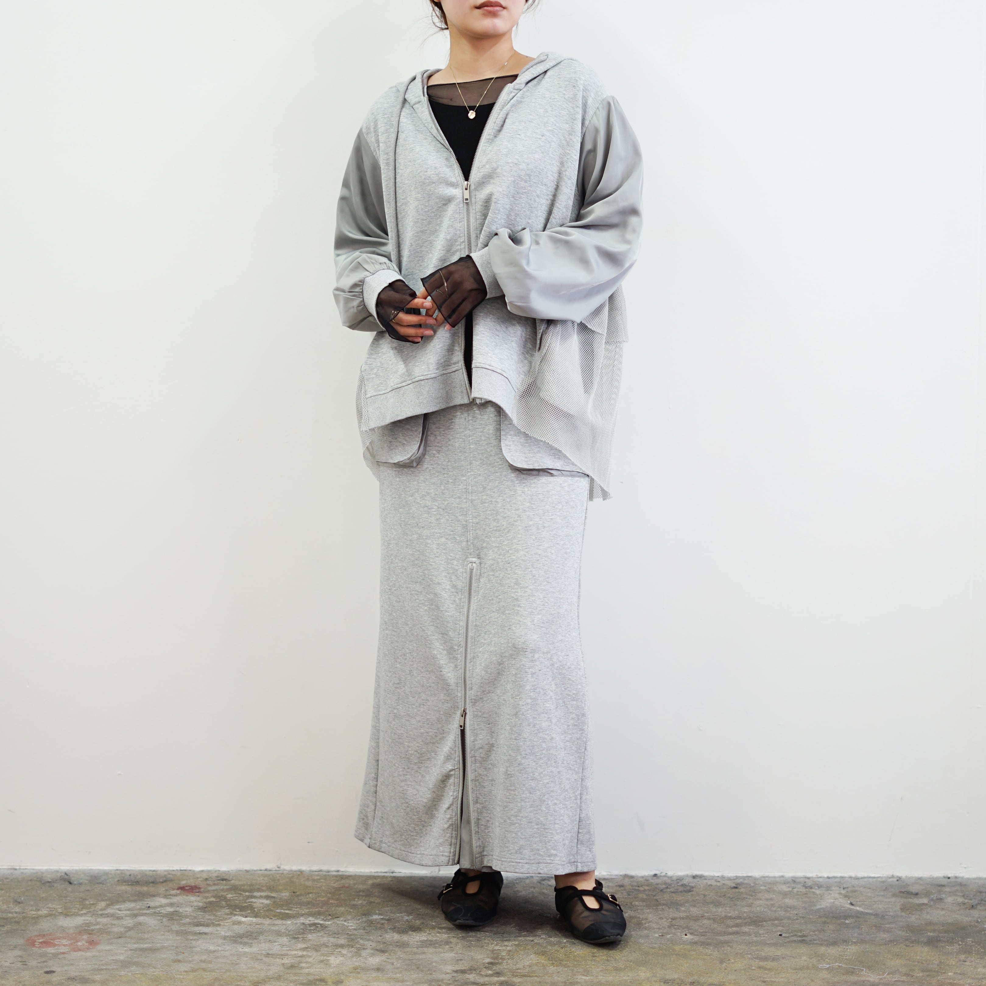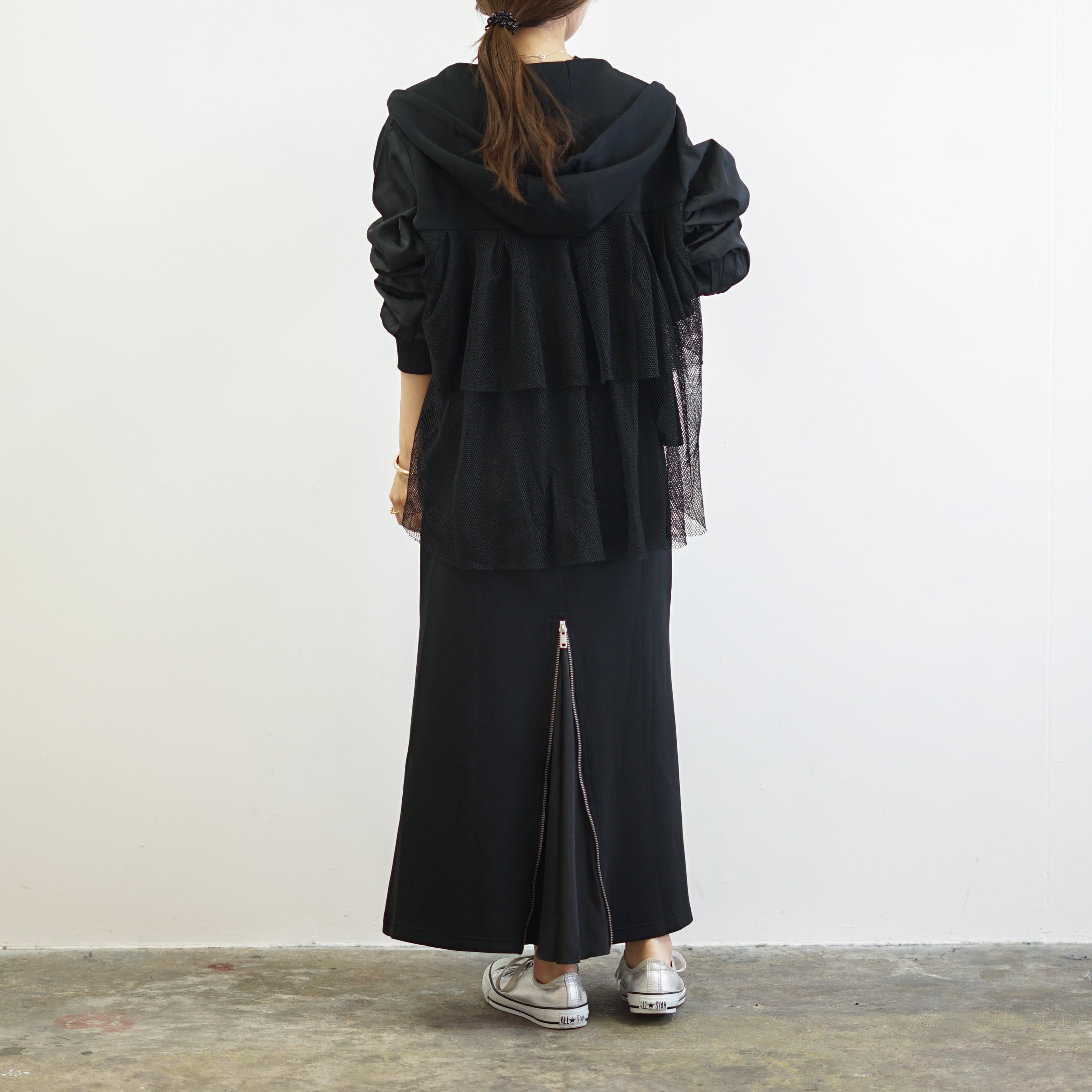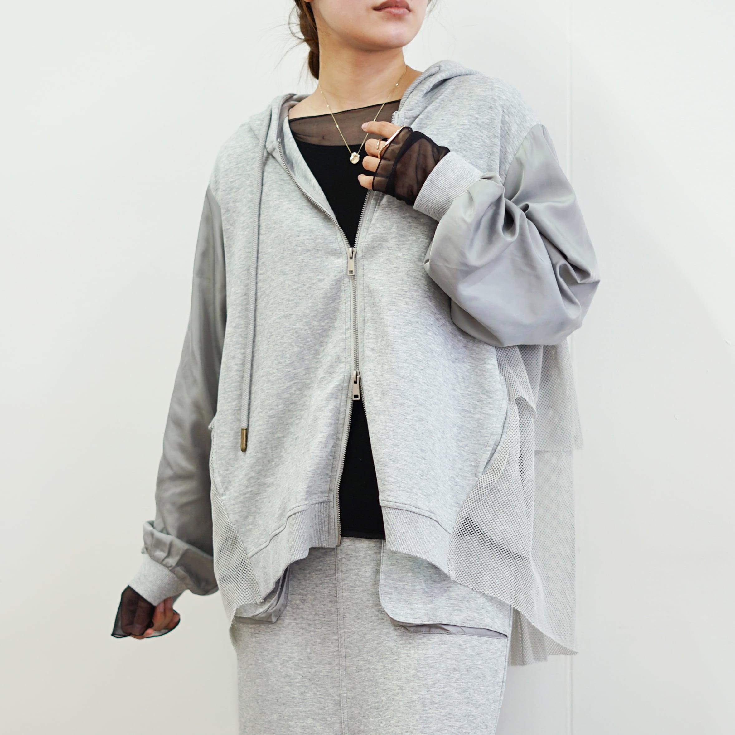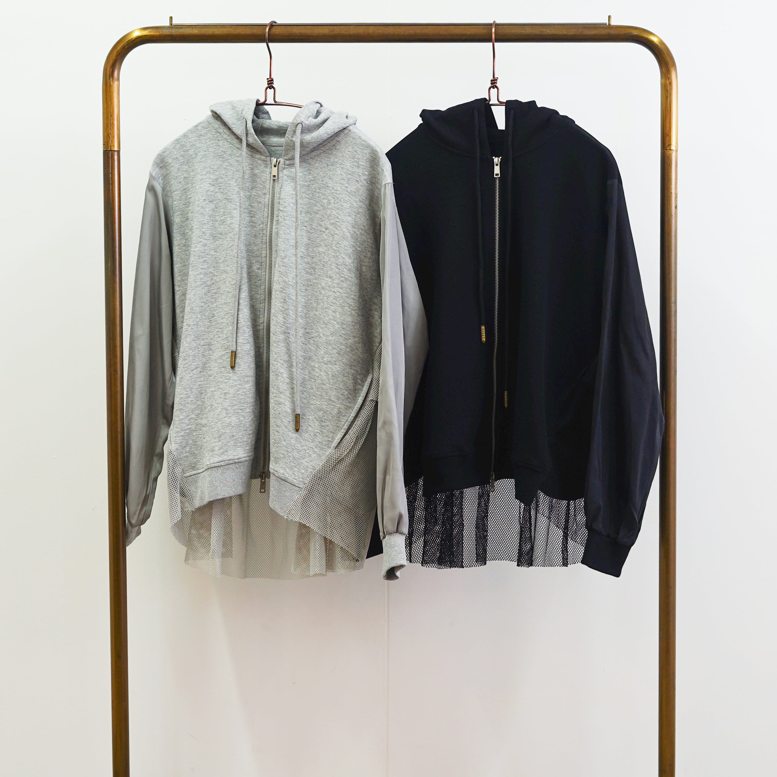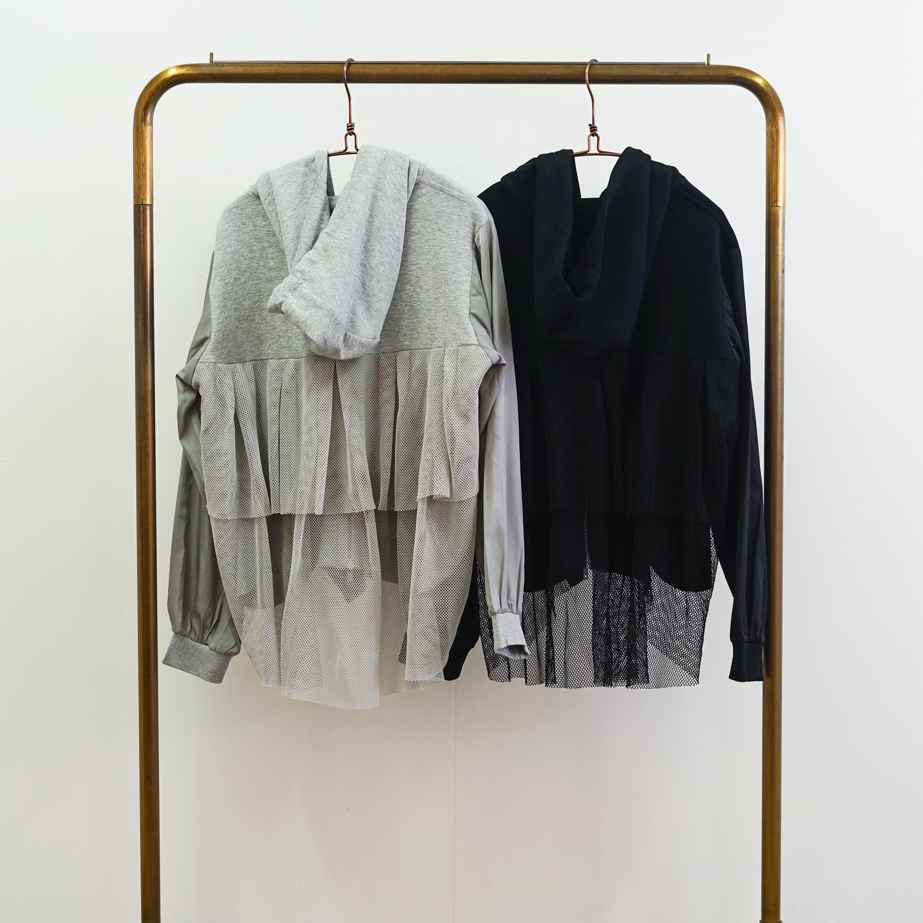 バック部分のチュールメッシュデザインが目を惹くパーカー