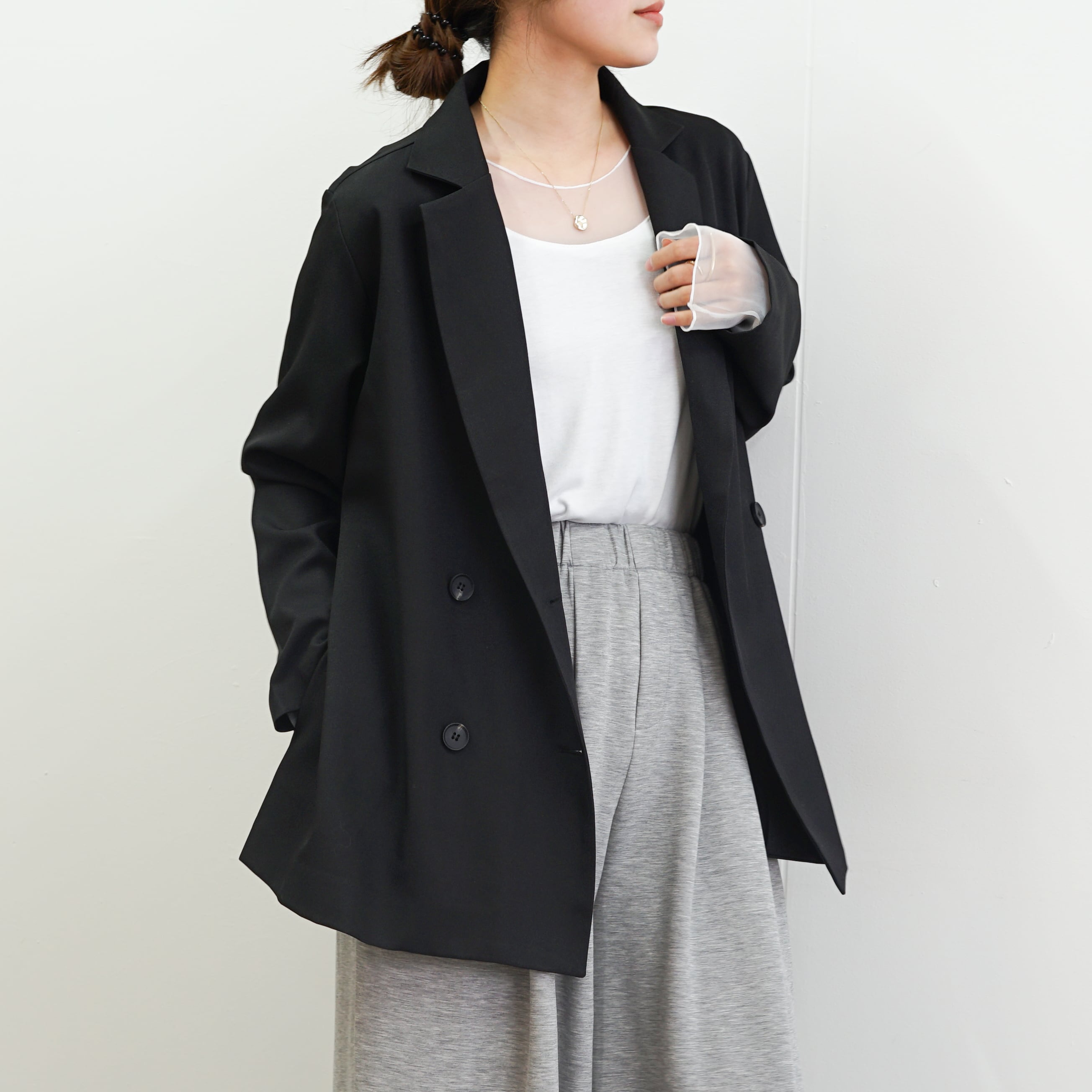 シアーが抜け感のあるすっきりとしたスタイルを演出し