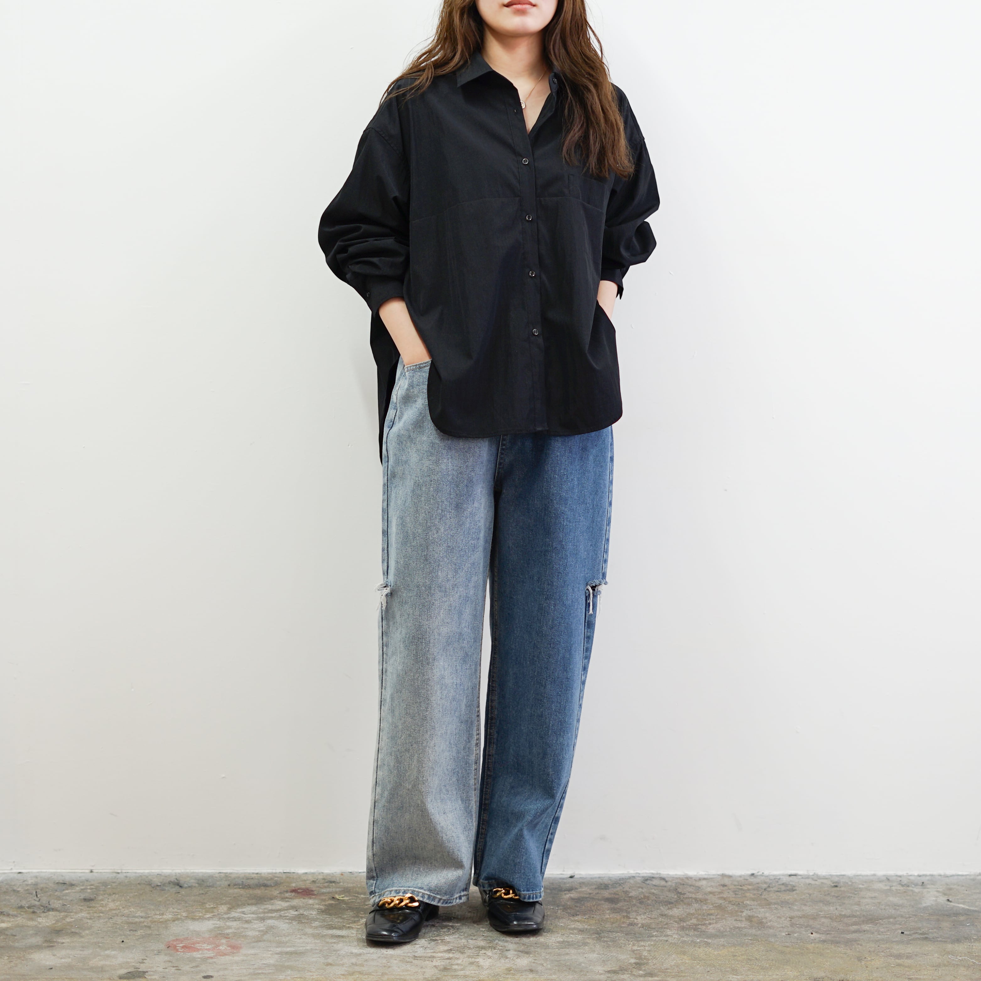 丈感にもこだわりデニムやワイドパンツなどどんなボトムともバランスよく合わせられる万能な1枚です。