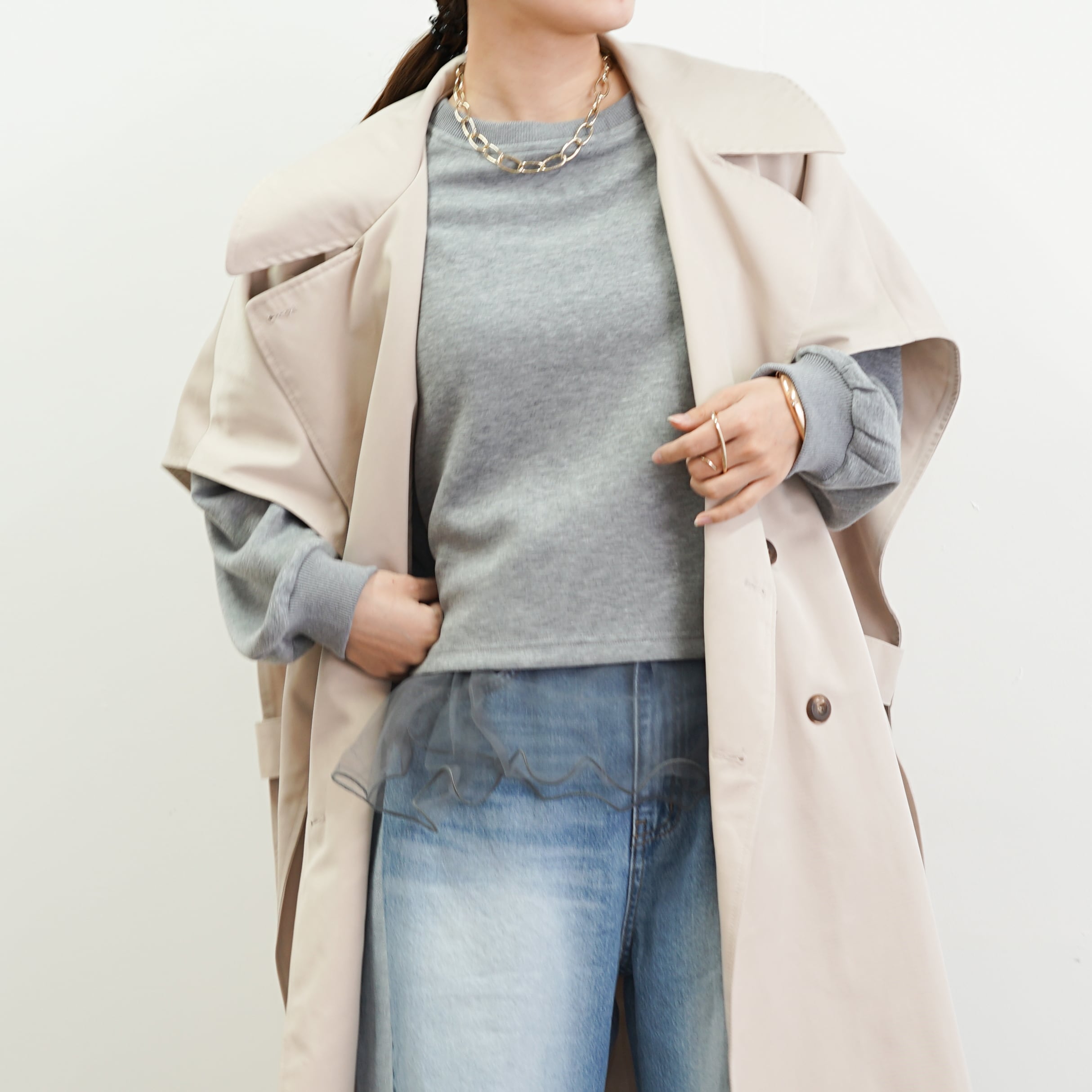 裾からのぞくフリルチュールを重ねた