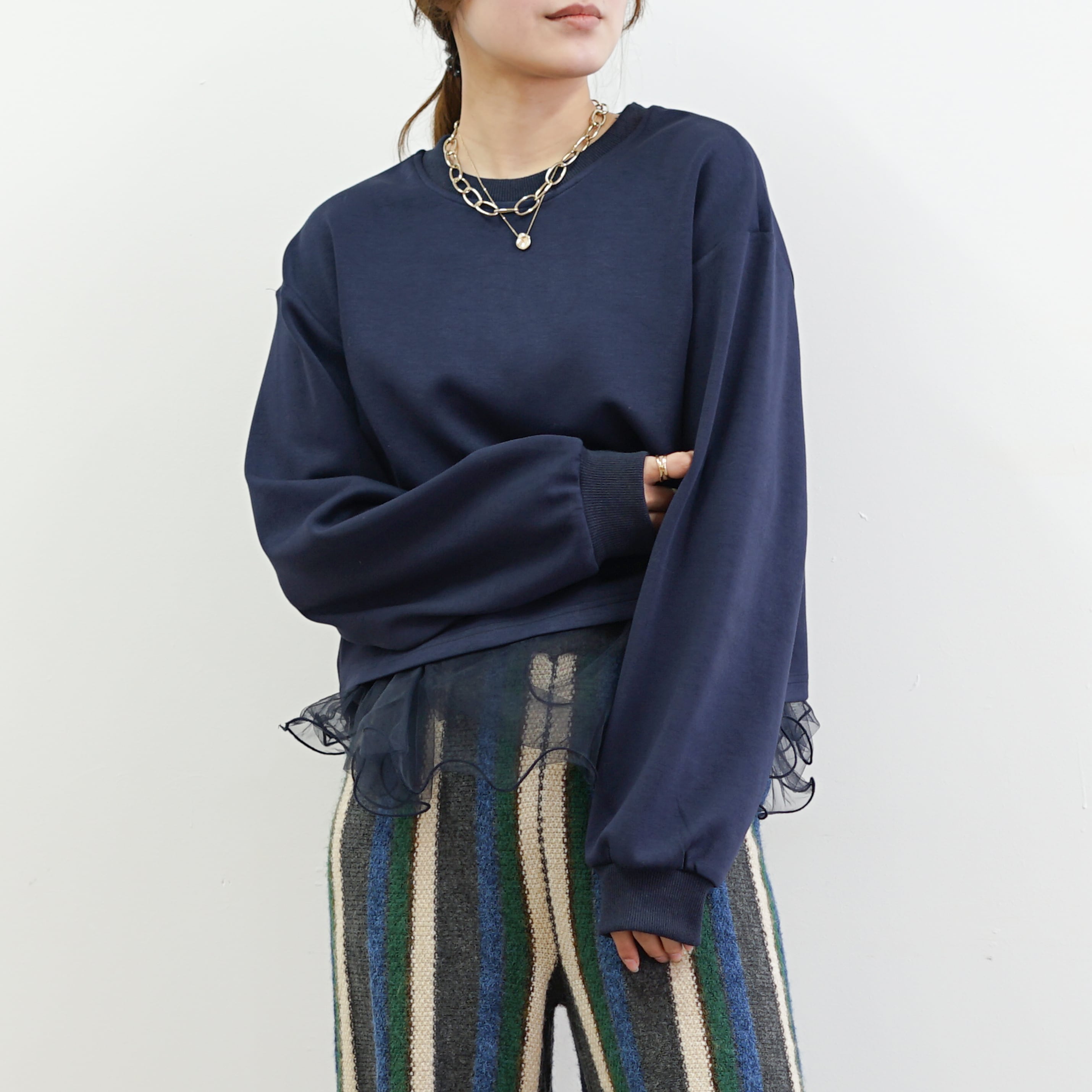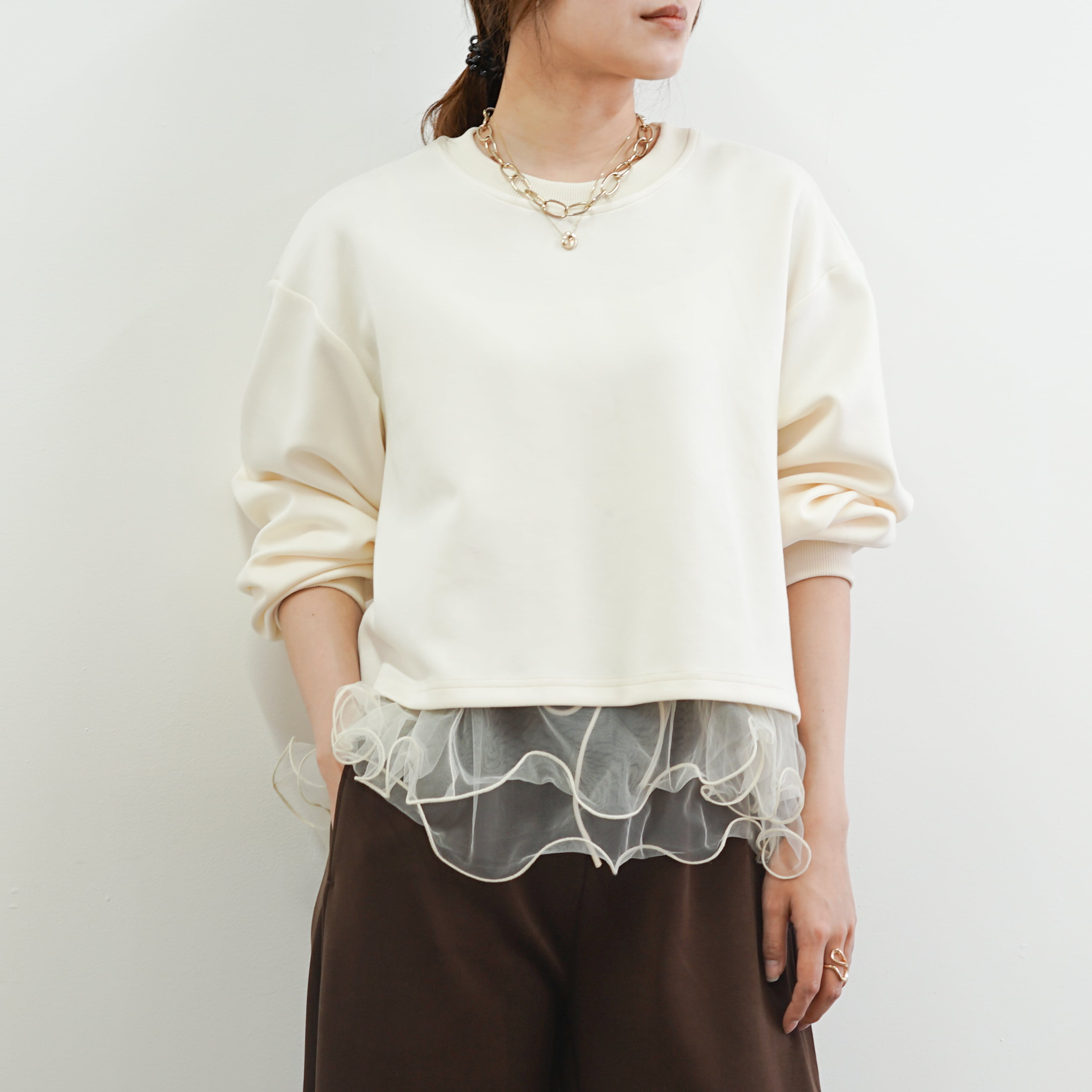 オーガンジーフリルレイヤードTOPS