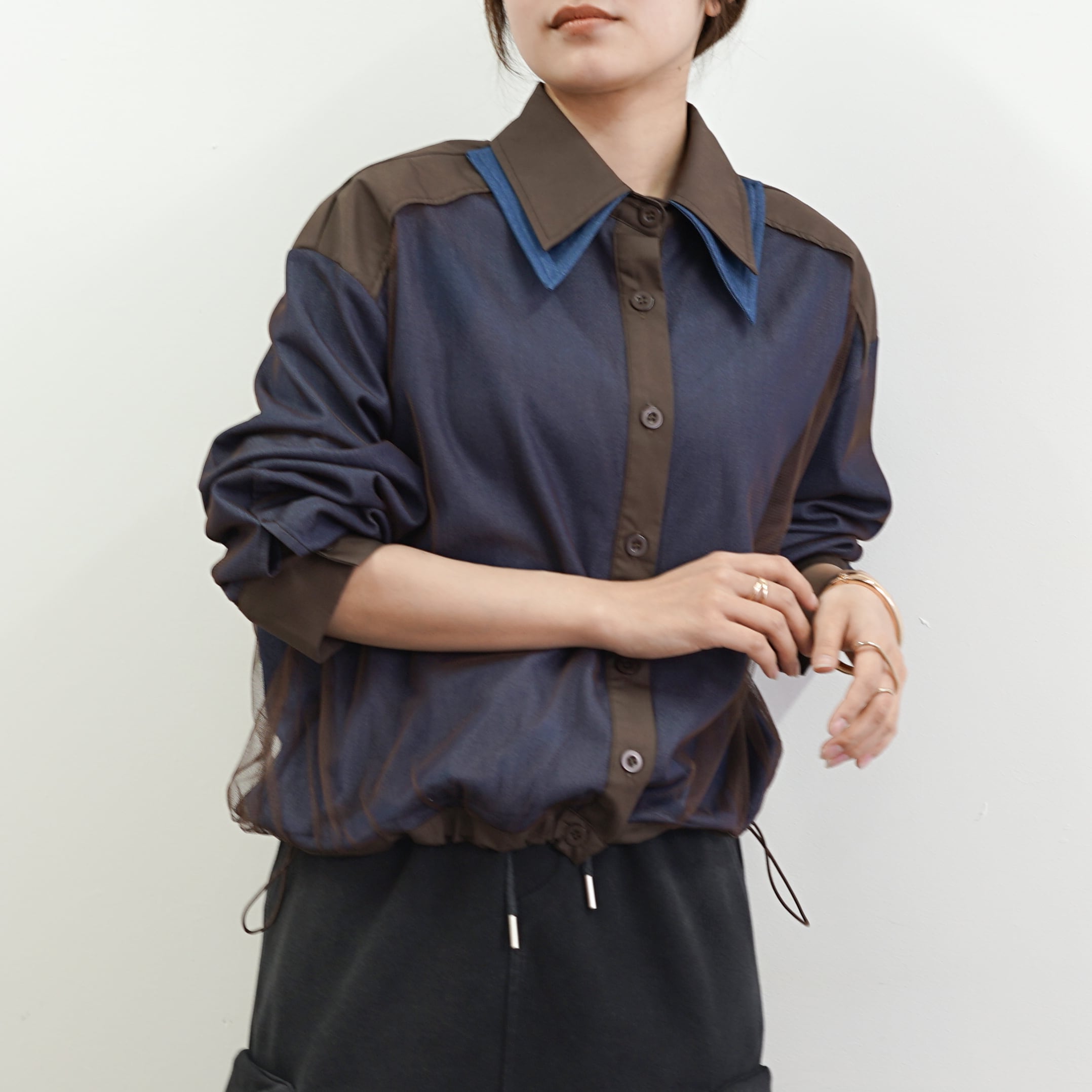 ベースカラーと異なるチュールが重ねられたデザインはシンプルながらもモード感のある一枚に!