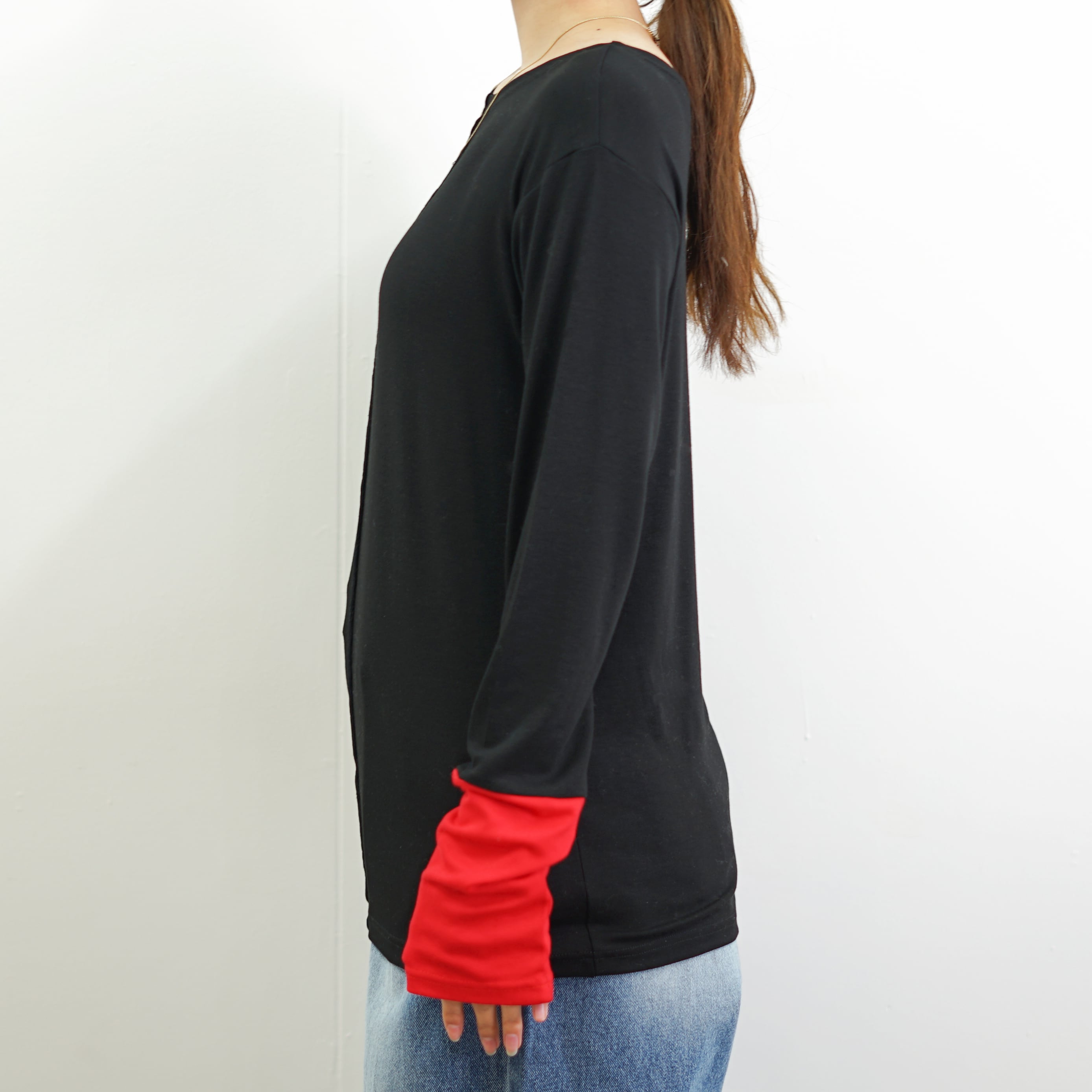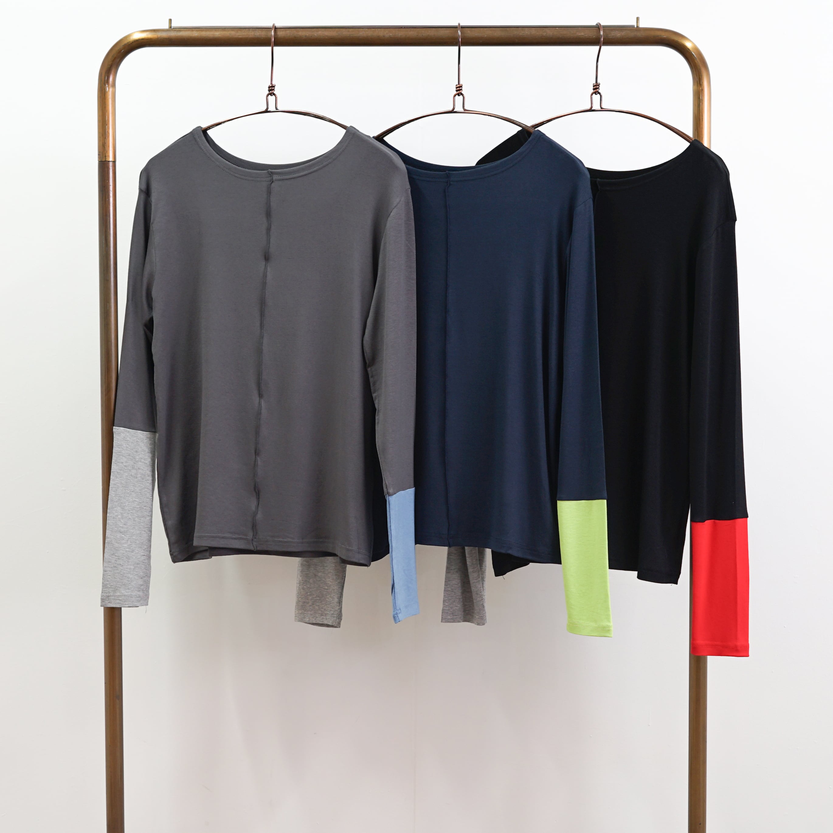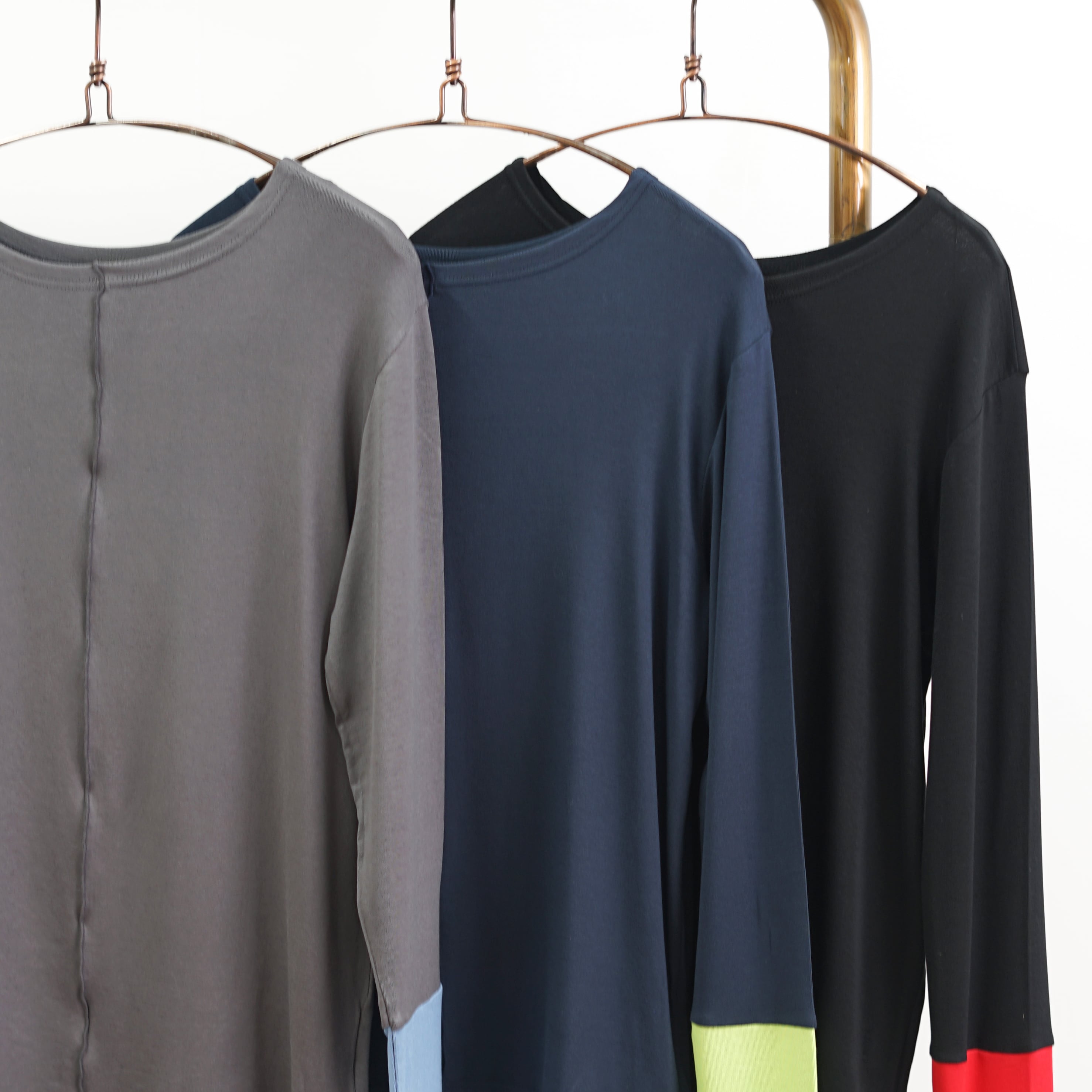 本体のカラーも使いやすい色をベースに袖口のバイカラーがこなれ感のあるインパクトのある仕上がりに◎