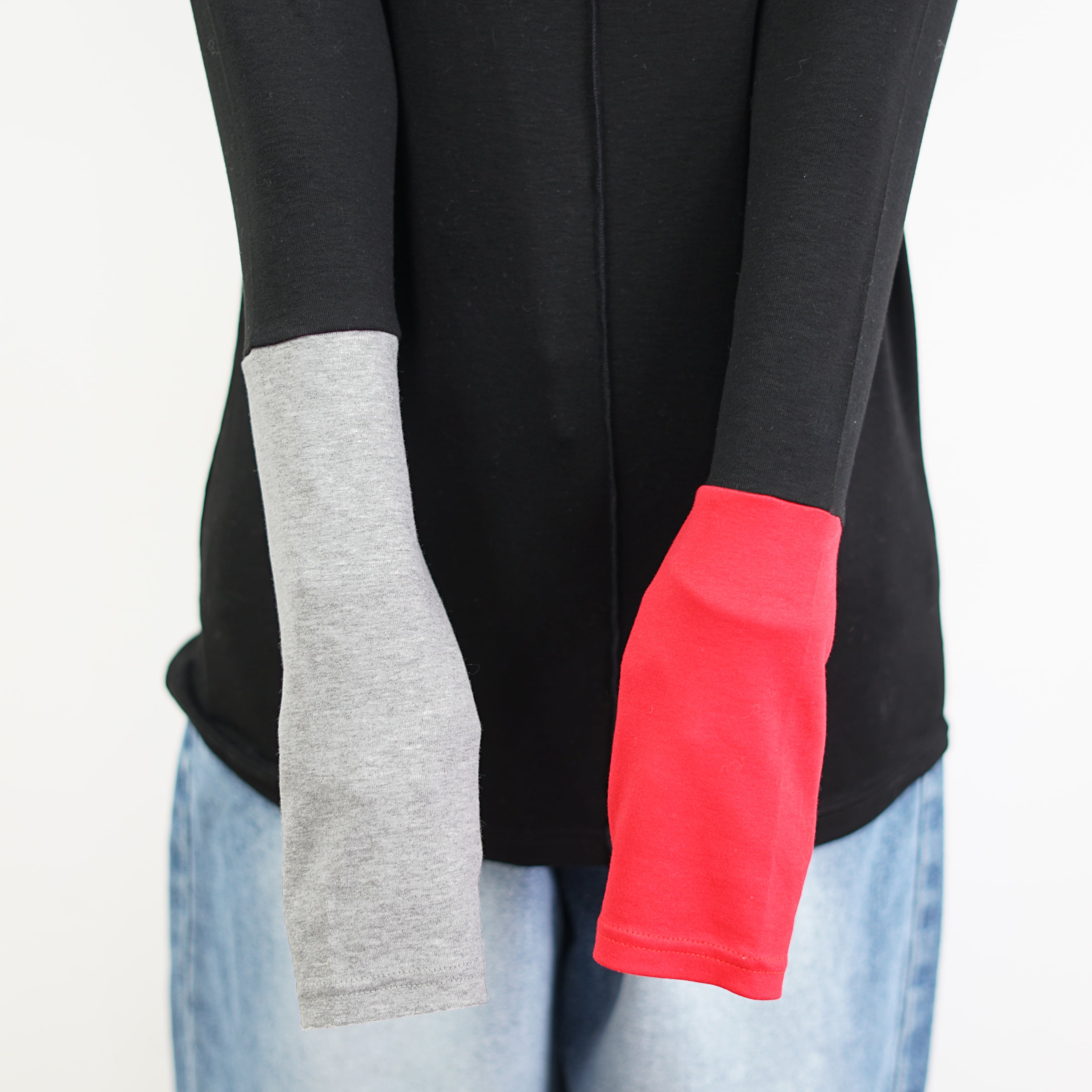 袖部分のみで派手になりすぎない配色でいつものコーデのワンポイントとして挑戦しやすく
