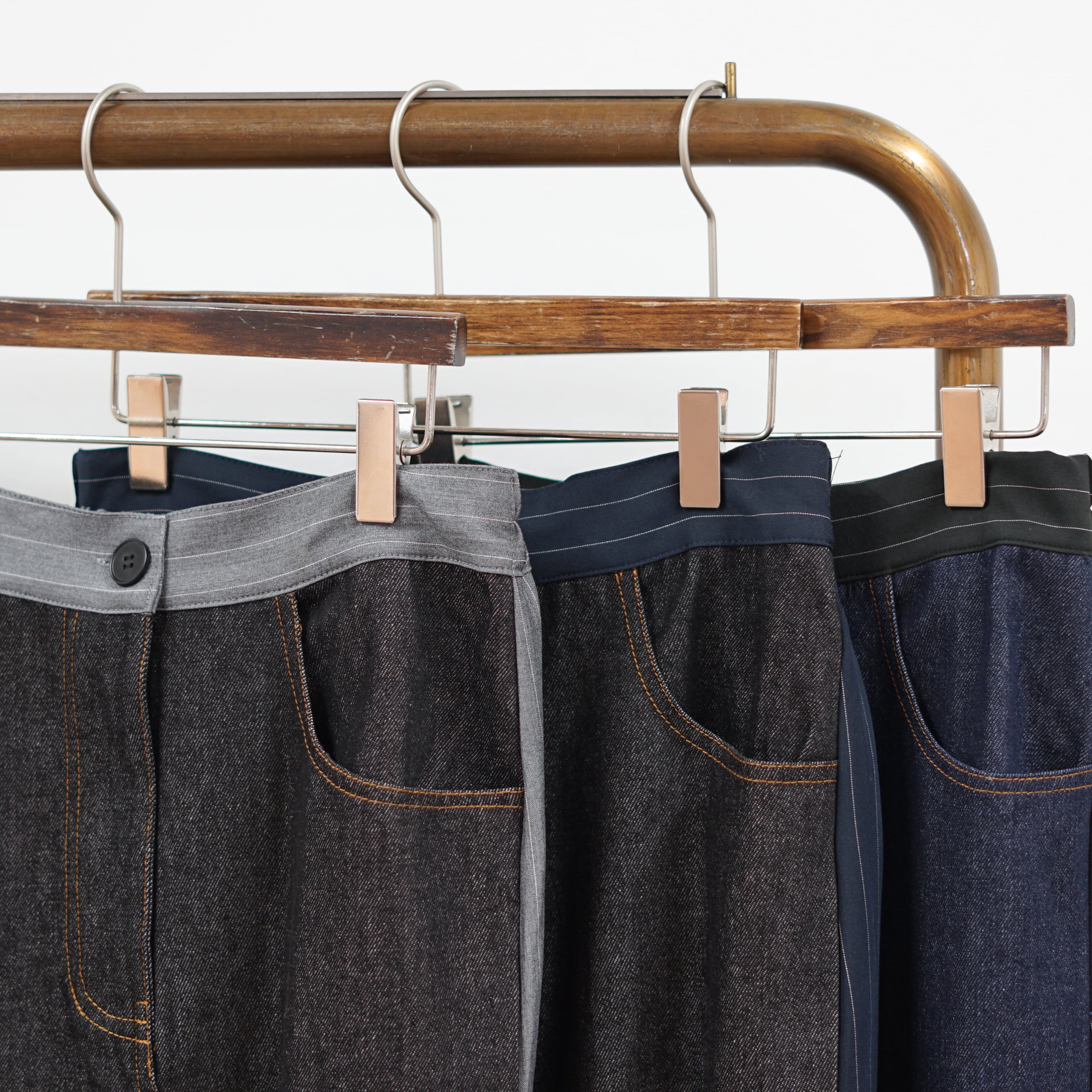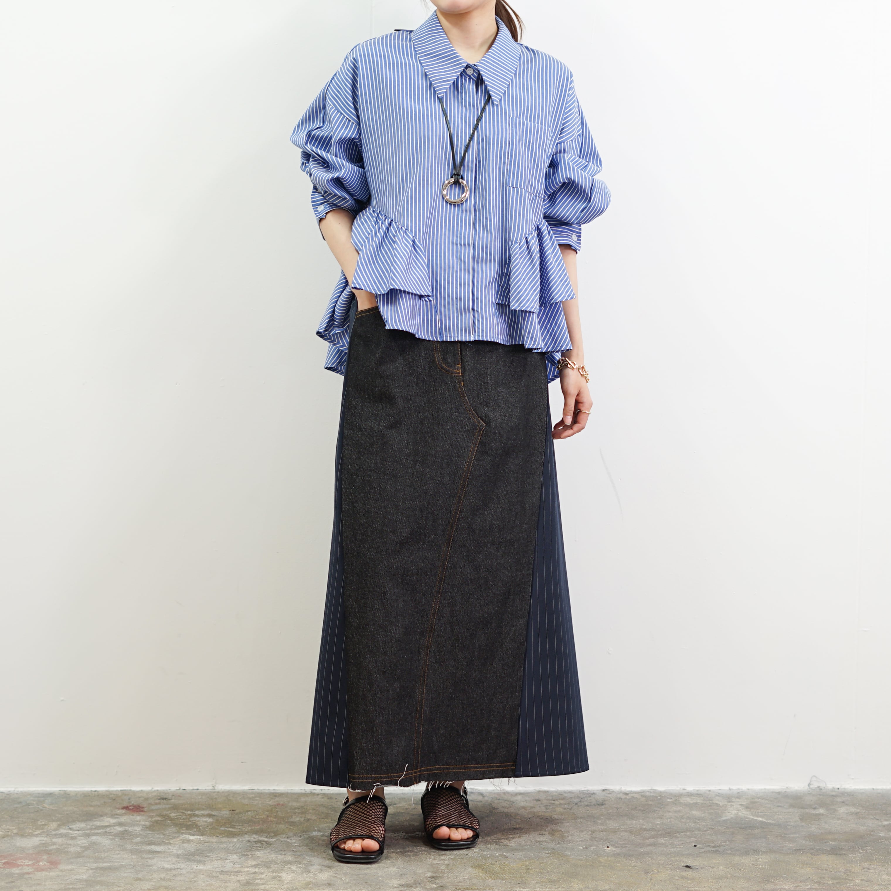 ストライプ地に切替えることでメリハリのある細見え効果も期待!