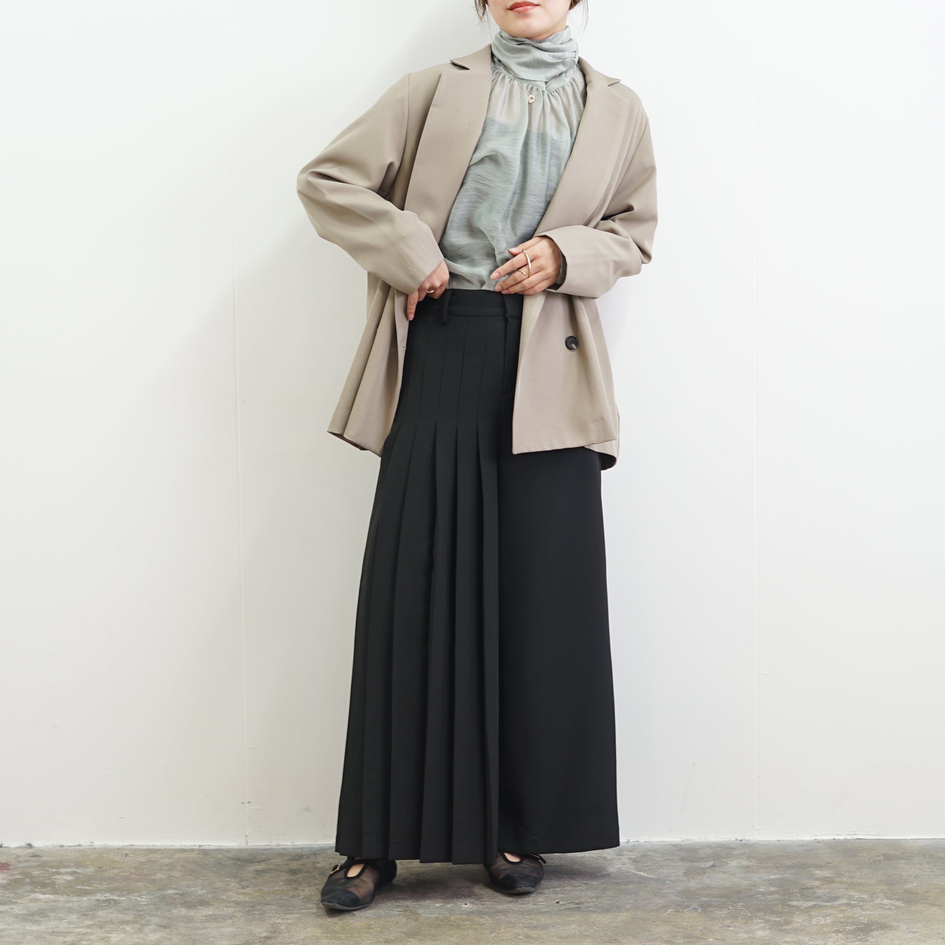 裾幅をたっぷりとったワイドなシルエットは