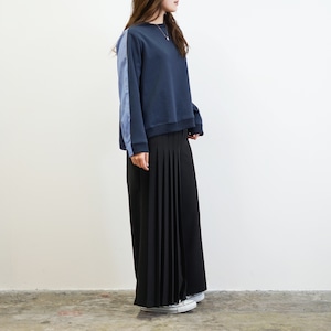 片側にプリーツをあしらったアシンメトリーデザイン。