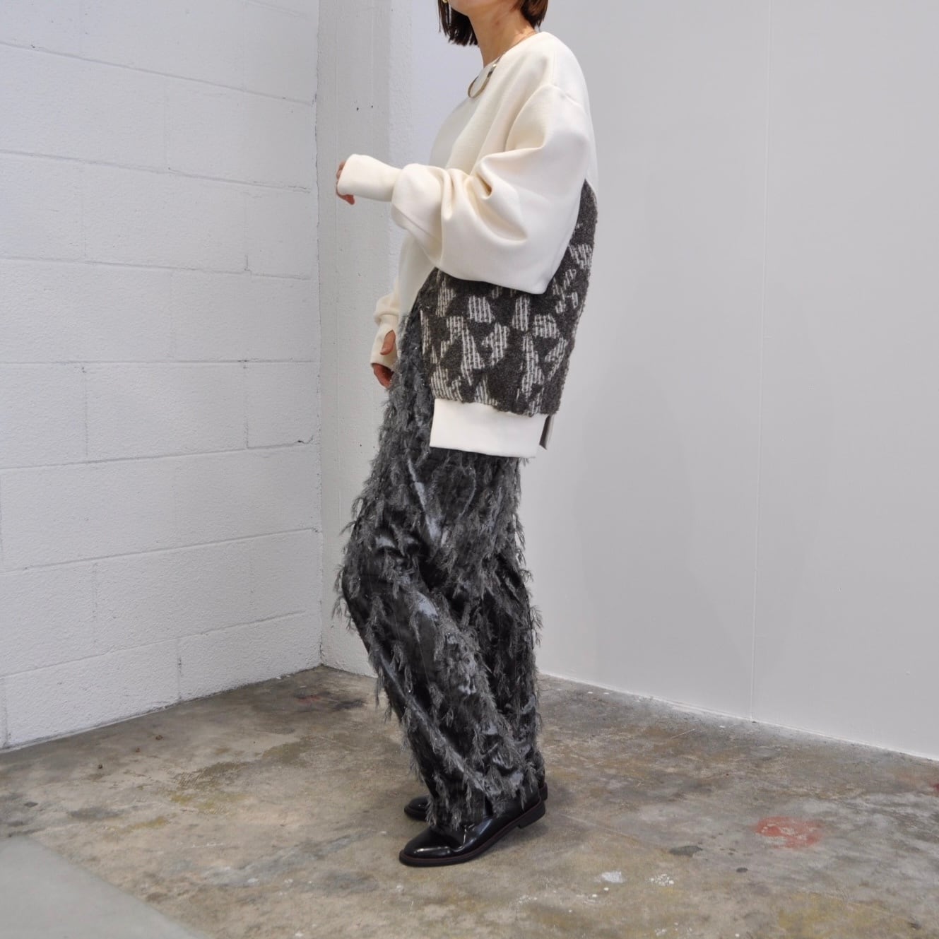もけもけのフリンジが華やかな印象にしてくれるのでスタイリングに