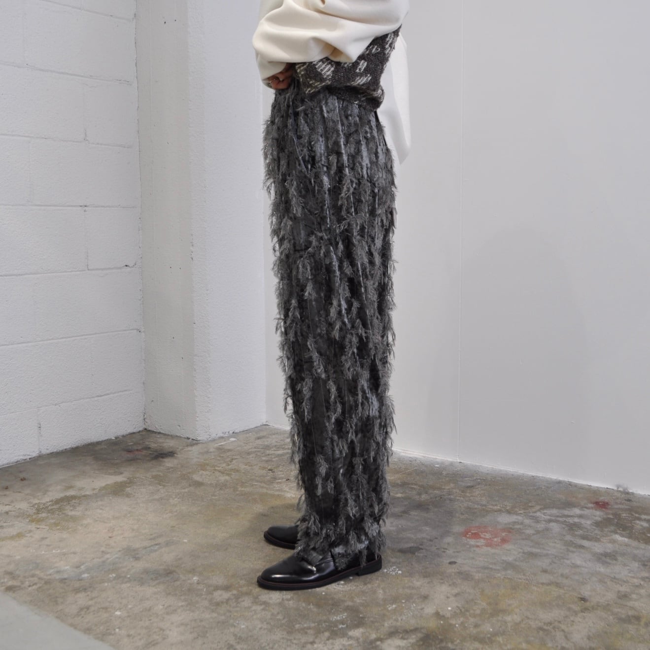 さらにベロアの光沢感が高見えさせてくれるパンツです。