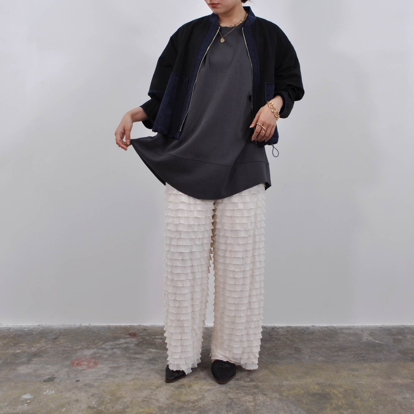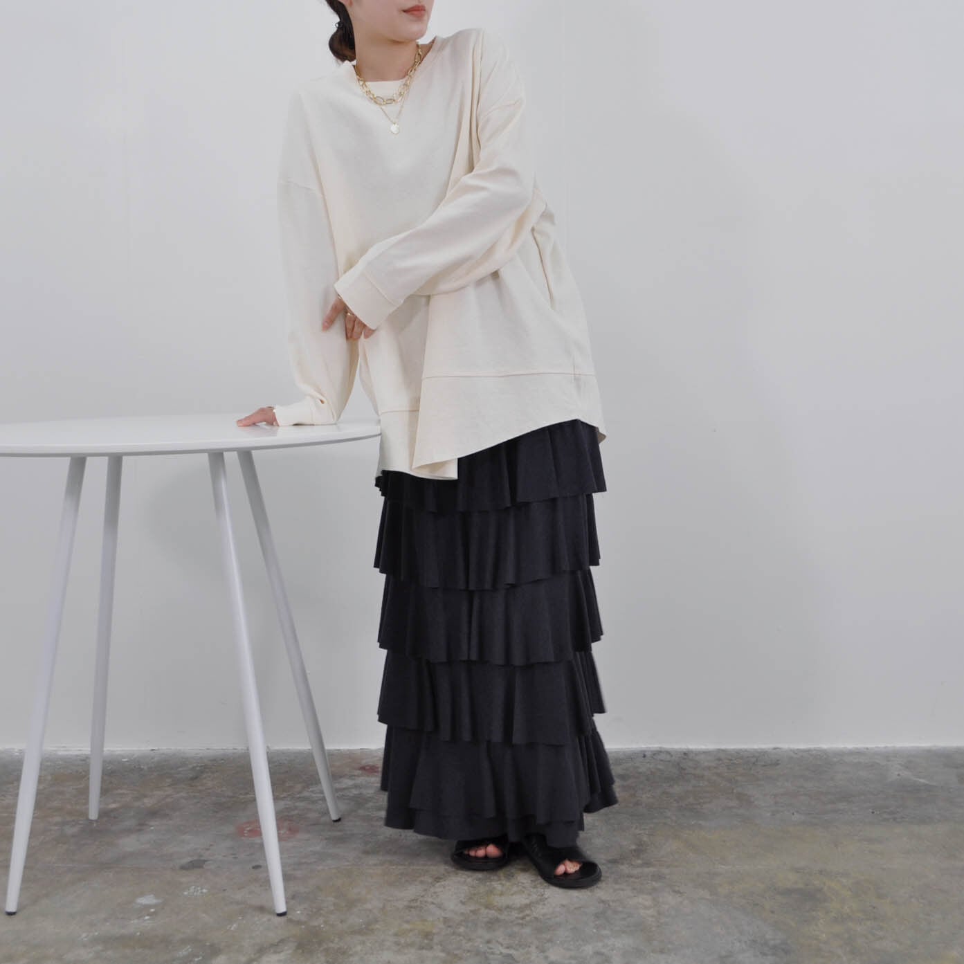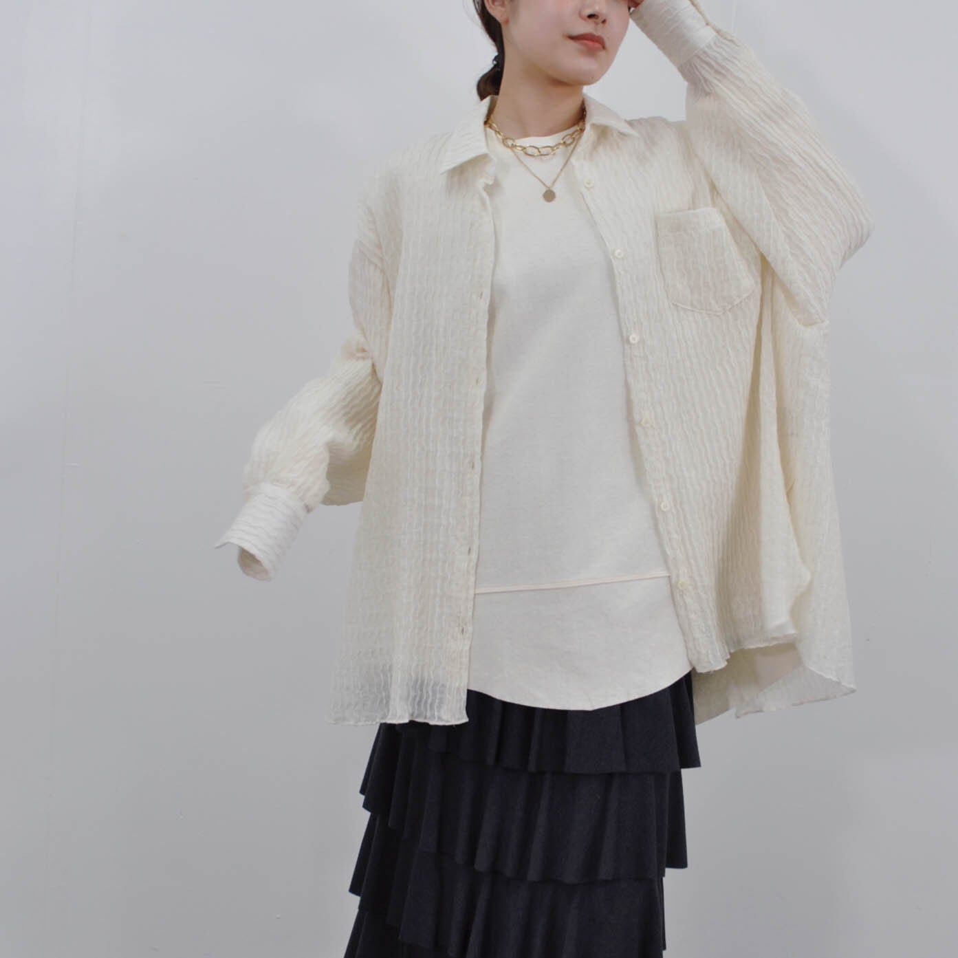ショートトップスとのレイヤードも