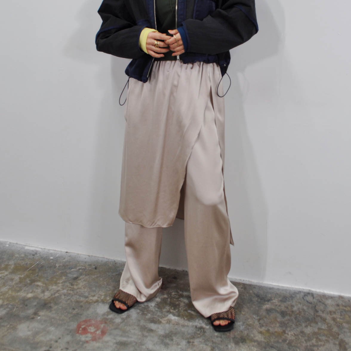 トレンドのレイヤードスタイルが叶うサテンパンツ