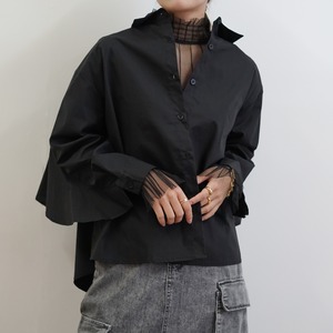 ボタンをとめても程よくゆったりとしたシルエットで体のラインを拾わず着用可能!